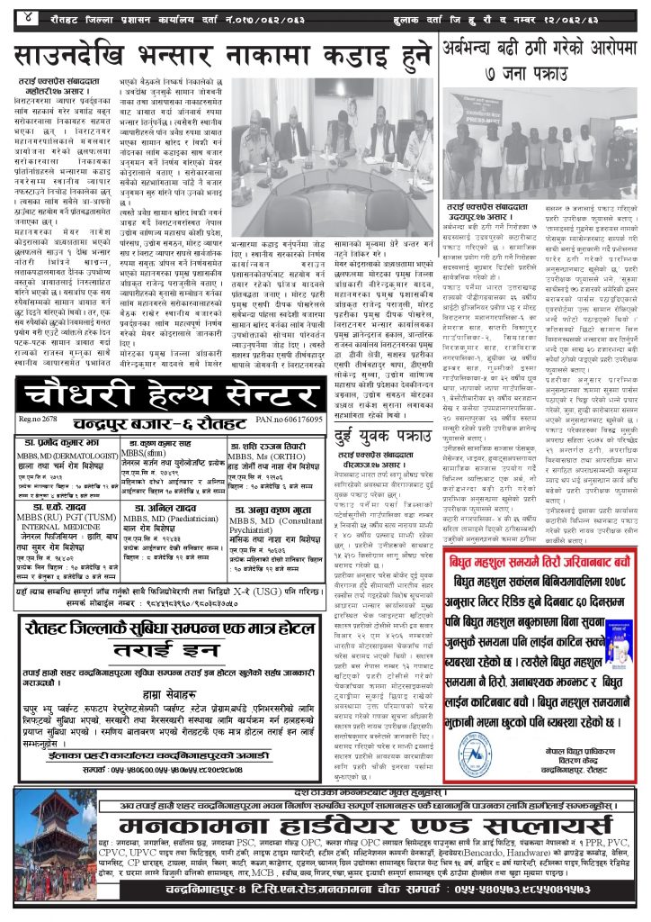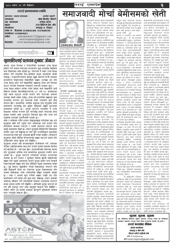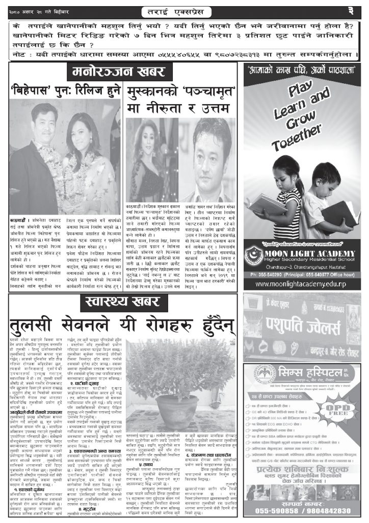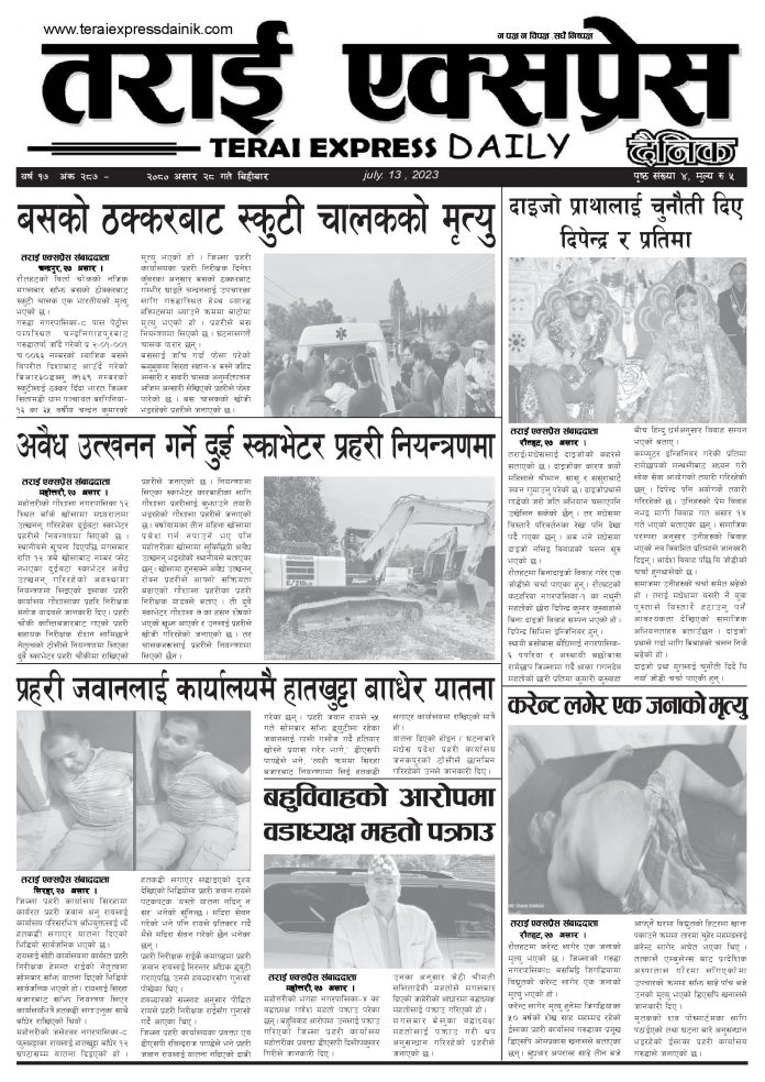 ई पेपरमुख्य समाचार २०८० असार २८ गतेको तराई एक्सप्रेस दैनिक तराई एक्सप्रेस दैनिक संवाददाता - July 13, 2023 RELATED ARTICLESMORE FROM AUTHOR ४० करोड कागज मिलाएको आरोपले मौलापुर ततायो २६ दिनमै ढल्यो गृहमन्त्रीको कुर्सी, सुधन गुरुङ ‘लगानी काण्ड’मा आउट! २०७३ वैशाख ९ गतेको तराई एक्सप्रेस दैनिक ताजा अपडेट ४० करोड कागज मिलाएको आरोपले मौलापुर ततायो April 23, 2026 ‘सेफ गल्र्स’ परियोजनाअन्तर्गत सेवा प्रदायक लक्षित पाँच दिने तालिम सम्पन्न April 23, 2026 यातायात व्यवस्था कार्यालय गौरमा सेवाग्राहीलाई ठगी गरेको आरोपमा एक जना पक्राउ April 22, 2026 जिल्ला धाउने दिन सकिने दाबी, व्यवहारमा कति सम्भव ? April 22, 2026 २६ दिनमै ढल्यो गृहमन्त्रीको कुर्सी, सुधन गुरुङ ‘लगानी काण्ड’मा आउट! April 22, 2026 धेरैले पढेको ४० करोड कागज मिलाएको आरोपले मौलापुर ततायो April 23, 2026 ‘सेफ गल्र्स’ परियोजनाअन्तर्गत सेवा प्रदायक लक्षित पाँच दिने तालिम सम्पन्न April 23, 2026 यातायात व्यवस्था कार्यालय गौरमा सेवाग्राहीलाई ठगी गरेको आरोपमा एक जना पक्राउ April 22, 2026 जिल्ला धाउने दिन सकिने दाबी, व्यवहारमा कति सम्भव ? April 22, 2026 २६ दिनमै ढल्यो गृहमन्त्रीको कुर्सी, सुधन गुरुङ ‘लगानी काण्ड’मा आउट! April 22, 2026