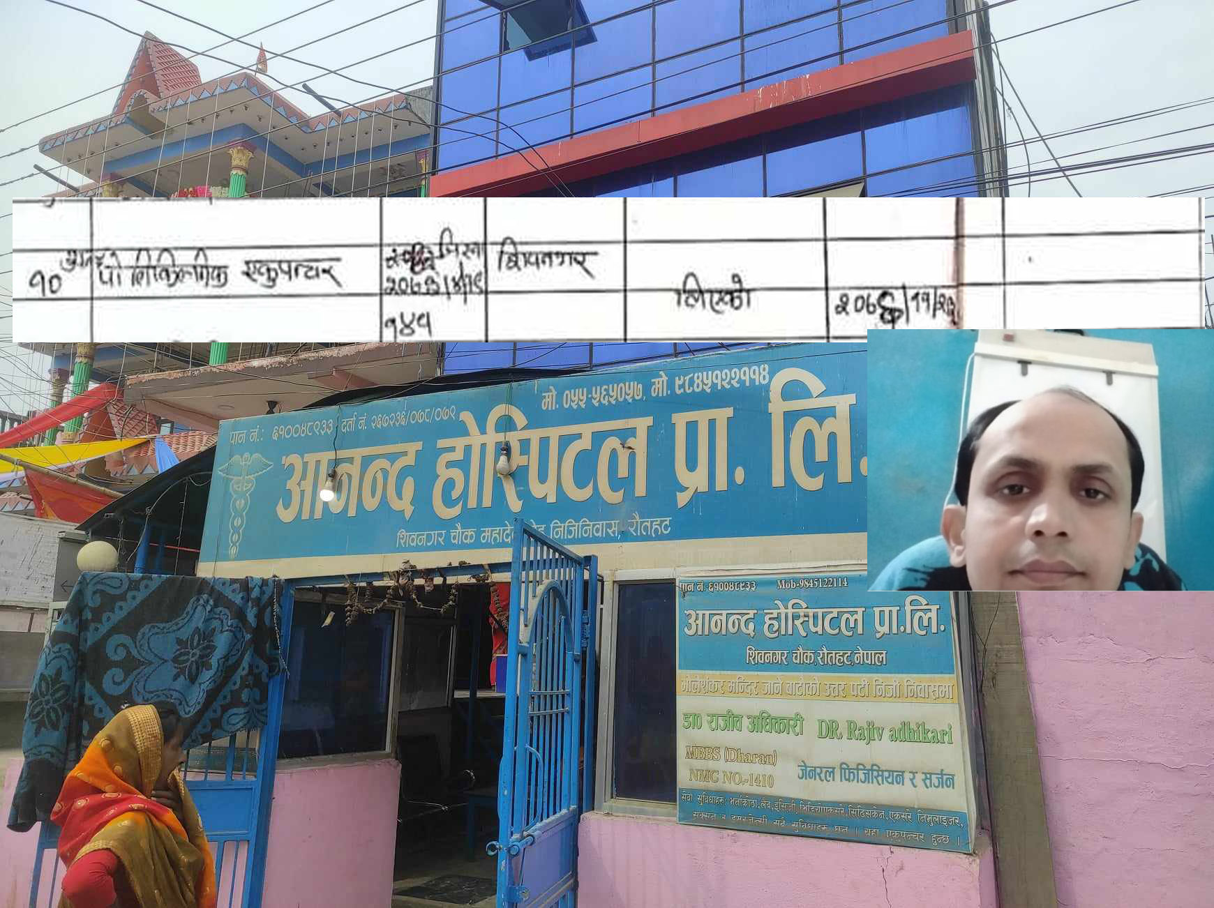 मापदण्ड विपरित तथा गैरकानुनी रुपमा संचालनमा रहेको नीजि आनन्द होस्पिटलले उपचारको नाउँमा विरामीहरुको ढाँड सेक्ने कार्य गरिरहदा पनि स्थानीय सरकार देखि लिएर संघिय सरकारका प्रतिनिधिहरु मुकदर्शक बनेपछि स्वास्थ्य क्षेत्रमा देखिएका विकृतिहरुले संस्थागत रुप लिदै गएको बताइएको जानकारहरुको भनाइ छ ।