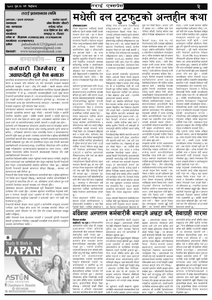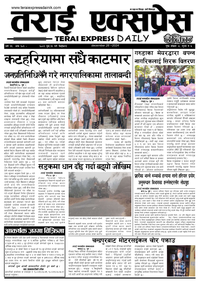 ई पेपरप्रदेशमधेश प्रदेश २०८१ पुस ११ गतेको तराई एक्सप्रेस दैनिक तराई एक्सप्रेस दैनिक संवाददाता - December 26, 2024 RELATED ARTICLESMORE FROM AUTHOR २०७३ वैशाख ९ गतेको तराई एक्सप्रेस दैनिक राजमार्ग कब्जा गर्नेको दिन गयो: सरकार ‘एक्सन मोड’मा काजको आडमा असुली धन्धा : प्रहरीभित्रै ‘नेटवर्क’ चल्दै ताजा अपडेट २०७३ वैशाख ९ गतेको तराई एक्सप्रेस दैनिक April 22, 2026 राजमार्ग कब्जा गर्नेको दिन गयो: सरकार ‘एक्सन मोड’मा April 21, 2026 काजको आडमा असुली धन्धा : प्रहरीभित्रै ‘नेटवर्क’ चल्दै April 21, 2026 ओभरसियरले उल्टै थर्काए स्थानीय April 21, 2026 आजको राशिफल April 21, 2026 धेरैले पढेको २०७३ वैशाख ९ गतेको तराई एक्सप्रेस दैनिक April 22, 2026 राजमार्ग कब्जा गर्नेको दिन गयो: सरकार ‘एक्सन मोड’मा April 21, 2026 काजको आडमा असुली धन्धा : प्रहरीभित्रै ‘नेटवर्क’ चल्दै April 21, 2026 ओभरसियरले उल्टै थर्काए स्थानीय April 21, 2026 आजको राशिफल April 21, 2026