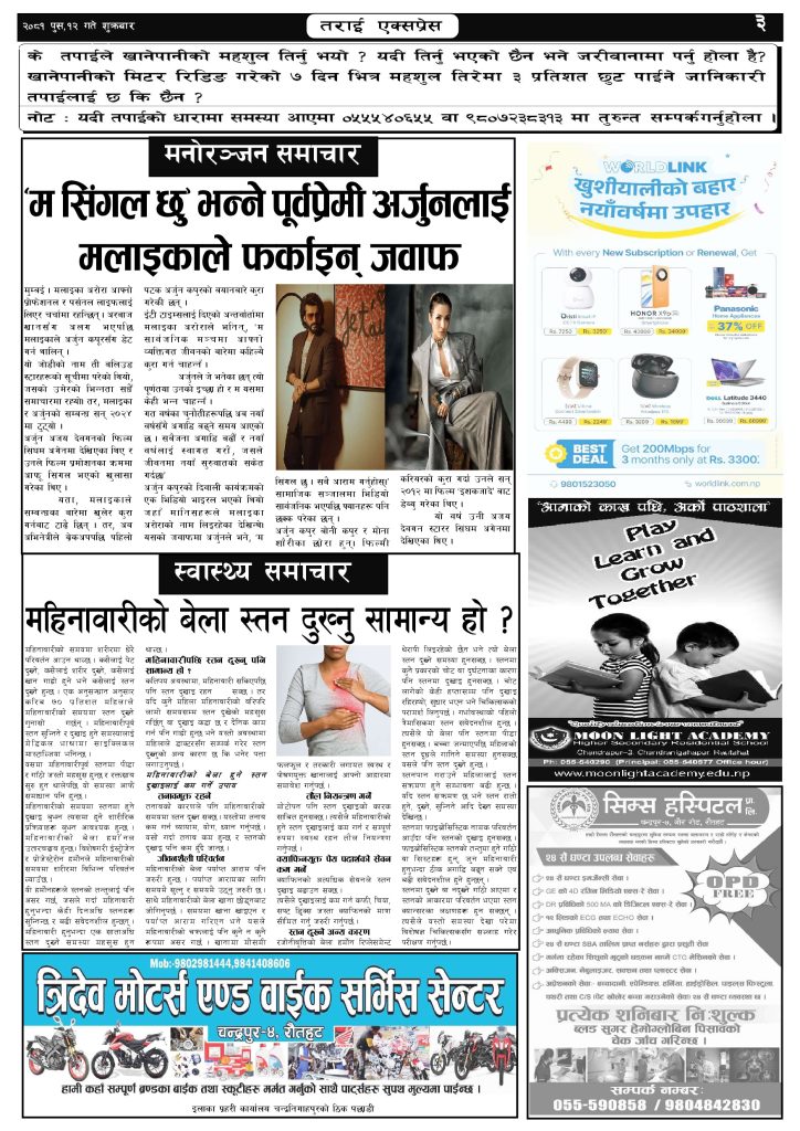 ई पेपर २०८१ पुस १२ गतेको तराई एक्सप्रेस दैनिक तराई एक्सप्रेस दैनिक संवाददाता - December 27, 2024 RELATED ARTICLESMORE FROM AUTHOR २०७३ वैशाख ९ गतेको तराई एक्सप्रेस दैनिक २०८२ वैशाख ८ गतेको तराई एक्सप्रेस दैनिक २०७३ वैशाख ३ गतेको तराई एक्सप्रेस दैनिक ताजा अपडेट २६ दिनमै ढल्यो गृहमन्त्रीको कुर्सी, सुधन गुरुङ ‘लगानी काण्ड’मा आउट! April 22, 2026 २०७३ वैशाख ९ गतेको तराई एक्सप्रेस दैनिक April 22, 2026 राजमार्ग कब्जा गर्नेको दिन गयो: सरकार ‘एक्सन मोड’मा April 21, 2026 काजको आडमा असुली धन्धा : प्रहरीभित्रै ‘नेटवर्क’ चल्दै April 21, 2026 ओभरसियरले उल्टै थर्काए स्थानीय April 21, 2026 धेरैले पढेको २६ दिनमै ढल्यो गृहमन्त्रीको कुर्सी, सुधन गुरुङ ‘लगानी काण्ड’मा आउट! April 22, 2026 २०७३ वैशाख ९ गतेको तराई एक्सप्रेस दैनिक April 22, 2026 राजमार्ग कब्जा गर्नेको दिन गयो: सरकार ‘एक्सन मोड’मा April 21, 2026 काजको आडमा असुली धन्धा : प्रहरीभित्रै ‘नेटवर्क’ चल्दै April 21, 2026 ओभरसियरले उल्टै थर्काए स्थानीय April 21, 2026