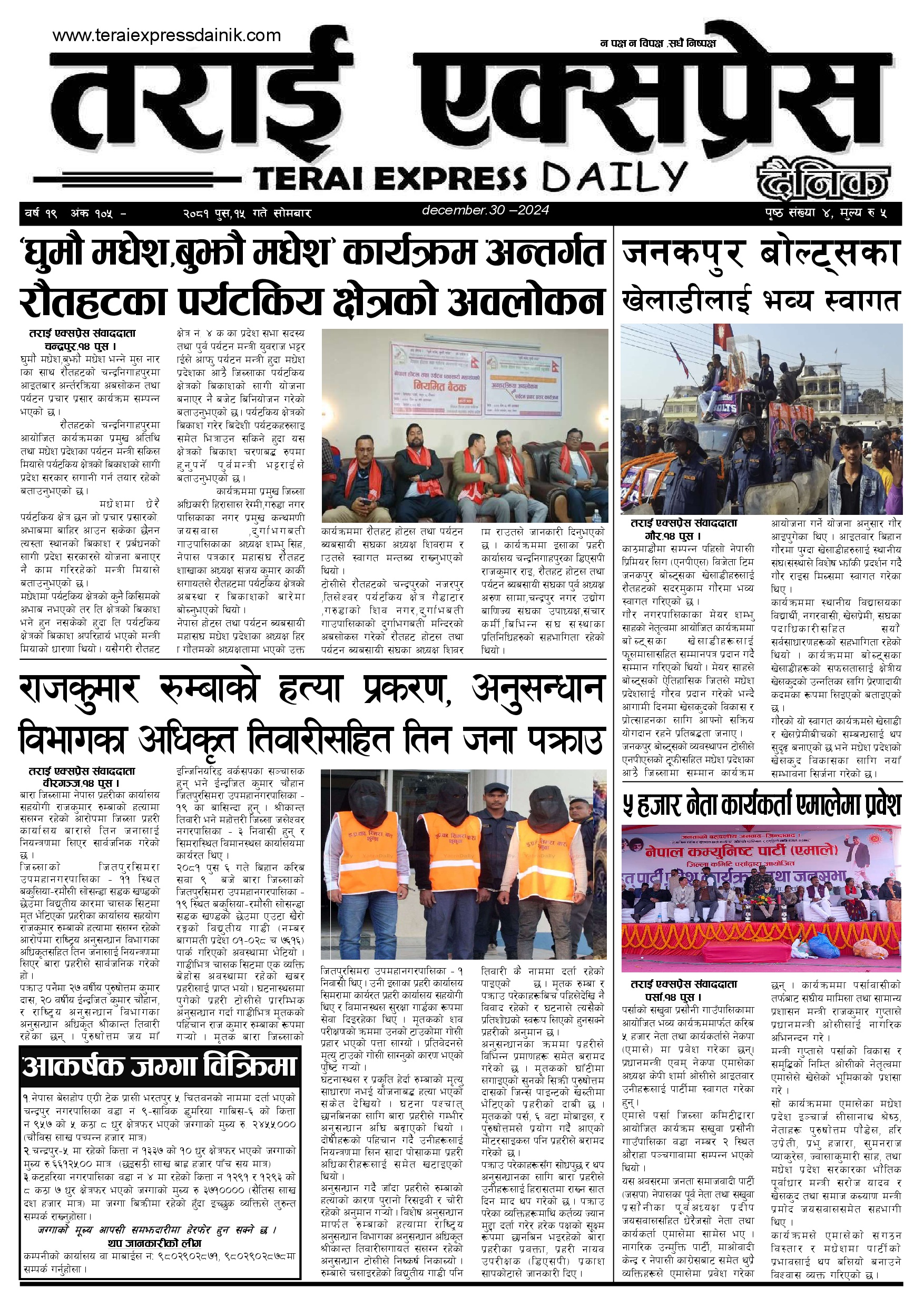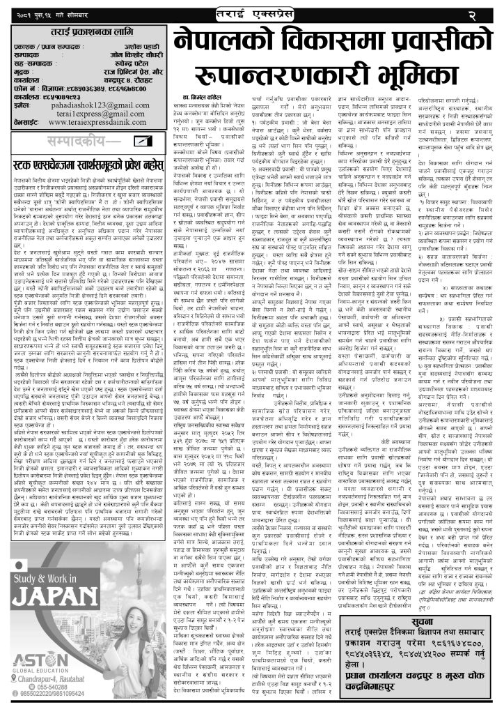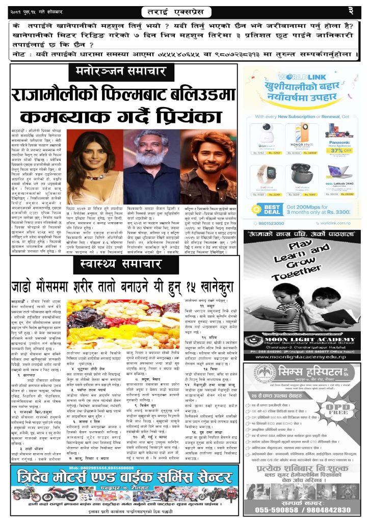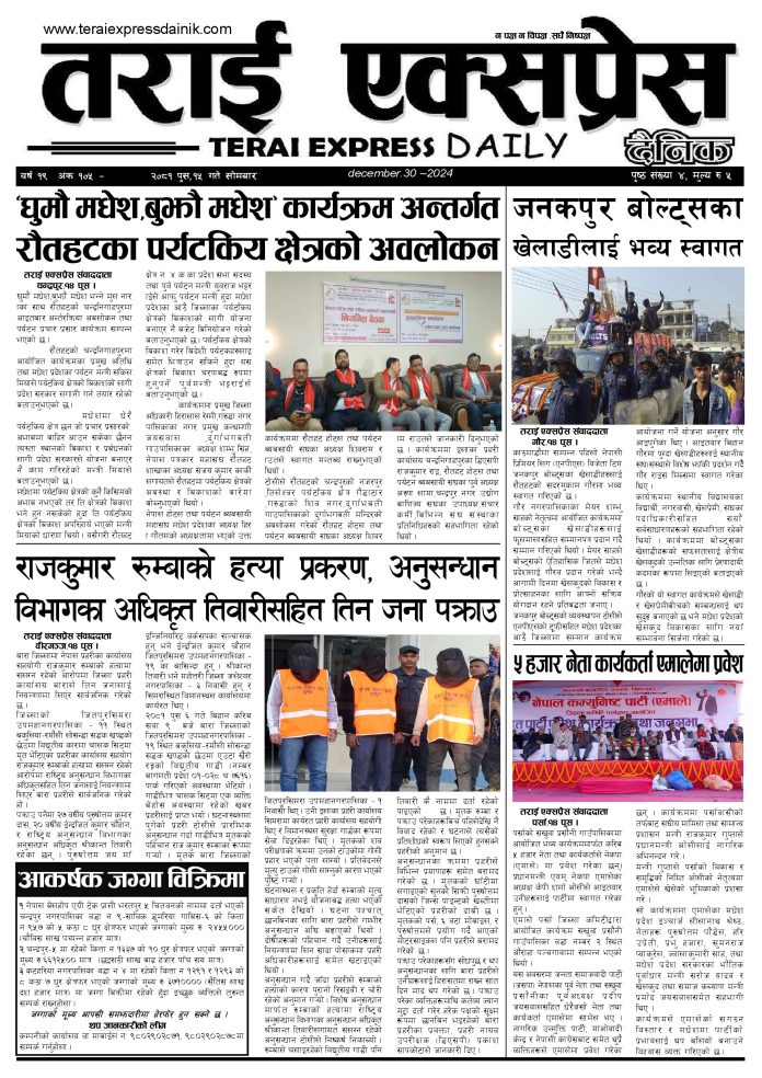 ई पेपरप्रदेशमधेश प्रदेश २०८१ पुस १५ गतेको तराई एक्सप्रेस दैनिक तराई एक्सप्रेस दैनिक संवाददाता - December 30, 2024 RELATED ARTICLESMORE FROM AUTHOR २०७३ वैशाख ९ गतेको तराई एक्सप्रेस दैनिक राजमार्ग कब्जा गर्नेको दिन गयो: सरकार ‘एक्सन मोड’मा काजको आडमा असुली धन्धा : प्रहरीभित्रै ‘नेटवर्क’ चल्दै ताजा अपडेट २०७३ वैशाख ९ गतेको तराई एक्सप्रेस दैनिक April 22, 2026 राजमार्ग कब्जा गर्नेको दिन गयो: सरकार ‘एक्सन मोड’मा April 21, 2026 काजको आडमा असुली धन्धा : प्रहरीभित्रै ‘नेटवर्क’ चल्दै April 21, 2026 ओभरसियरले उल्टै थर्काए स्थानीय April 21, 2026 आजको राशिफल April 21, 2026 धेरैले पढेको २०७३ वैशाख ९ गतेको तराई एक्सप्रेस दैनिक April 22, 2026 राजमार्ग कब्जा गर्नेको दिन गयो: सरकार ‘एक्सन मोड’मा April 21, 2026 काजको आडमा असुली धन्धा : प्रहरीभित्रै ‘नेटवर्क’ चल्दै April 21, 2026 ओभरसियरले उल्टै थर्काए स्थानीय April 21, 2026 आजको राशिफल April 21, 2026
