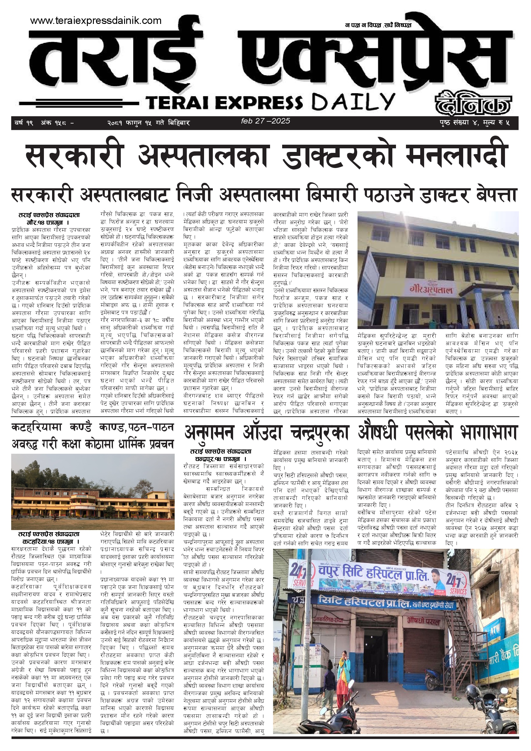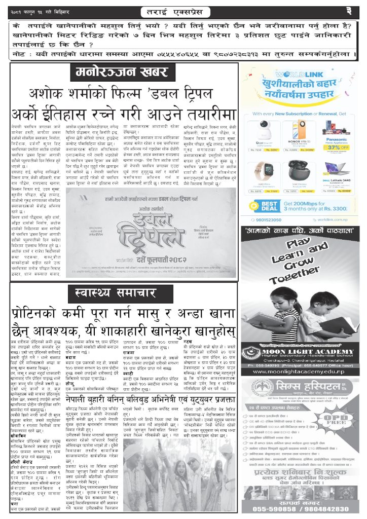 ई पेपर २०८१ फागुन १५ गतेको तराई एक्सप्रेस दैनिक तराई एक्सप्रेस दैनिक - February 27, 2025 RELATED ARTICLESMORE FROM AUTHOR २०७३ वैशाख ९ गतेको तराई एक्सप्रेस दैनिक २०८२ वैशाख ८ गतेको तराई एक्सप्रेस दैनिक २०७३ वैशाख ३ गतेको तराई एक्सप्रेस दैनिक ताजा अपडेट जिल्ला धाउने दिन सकिने दाबी, व्यवहारमा कति सम्भव ? April 22, 2026 २६ दिनमै ढल्यो गृहमन्त्रीको कुर्सी, सुधन गुरुङ ‘लगानी काण्ड’मा आउट! April 22, 2026 २०७३ वैशाख ९ गतेको तराई एक्सप्रेस दैनिक April 22, 2026 राजमार्ग कब्जा गर्नेको दिन गयो: सरकार ‘एक्सन मोड’मा April 21, 2026 काजको आडमा असुली धन्धा : प्रहरीभित्रै ‘नेटवर्क’ चल्दै April 21, 2026 धेरैले पढेको जिल्ला धाउने दिन सकिने दाबी, व्यवहारमा कति सम्भव ? April 22, 2026 २६ दिनमै ढल्यो गृहमन्त्रीको कुर्सी, सुधन गुरुङ ‘लगानी काण्ड’मा आउट! April 22, 2026 २०७३ वैशाख ९ गतेको तराई एक्सप्रेस दैनिक April 22, 2026 राजमार्ग कब्जा गर्नेको दिन गयो: सरकार ‘एक्सन मोड’मा April 21, 2026 काजको आडमा असुली धन्धा : प्रहरीभित्रै ‘नेटवर्क’ चल्दै April 21, 2026