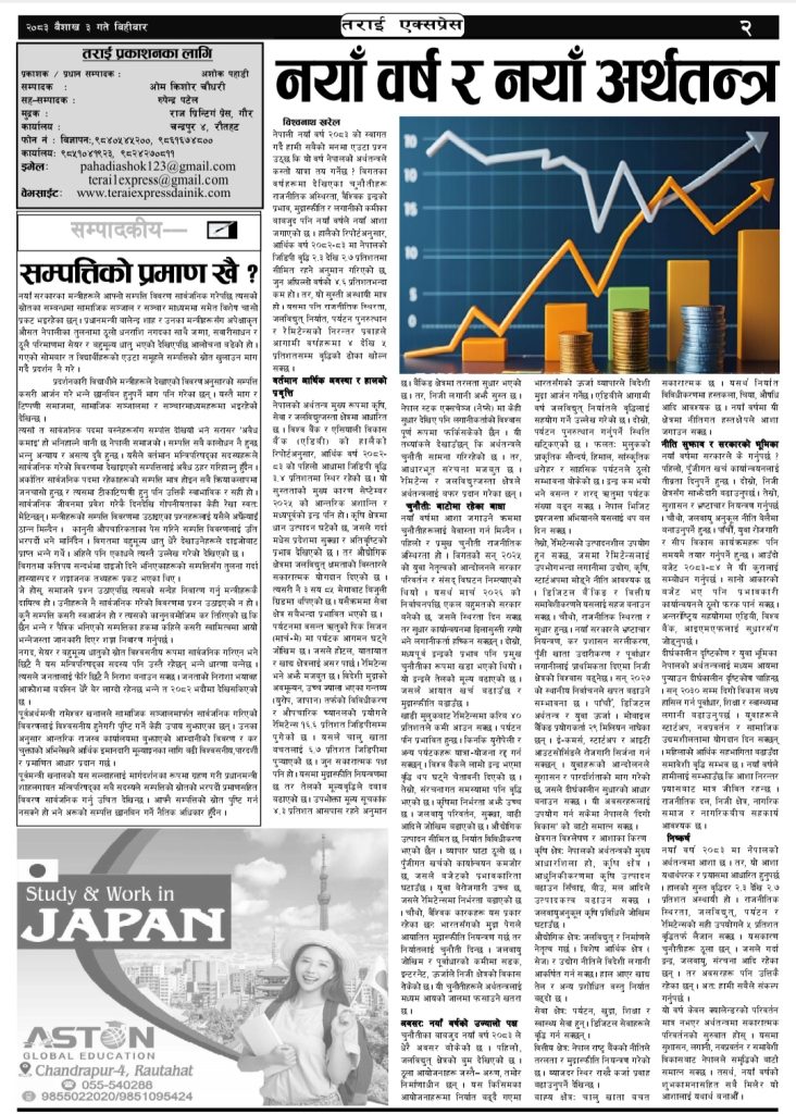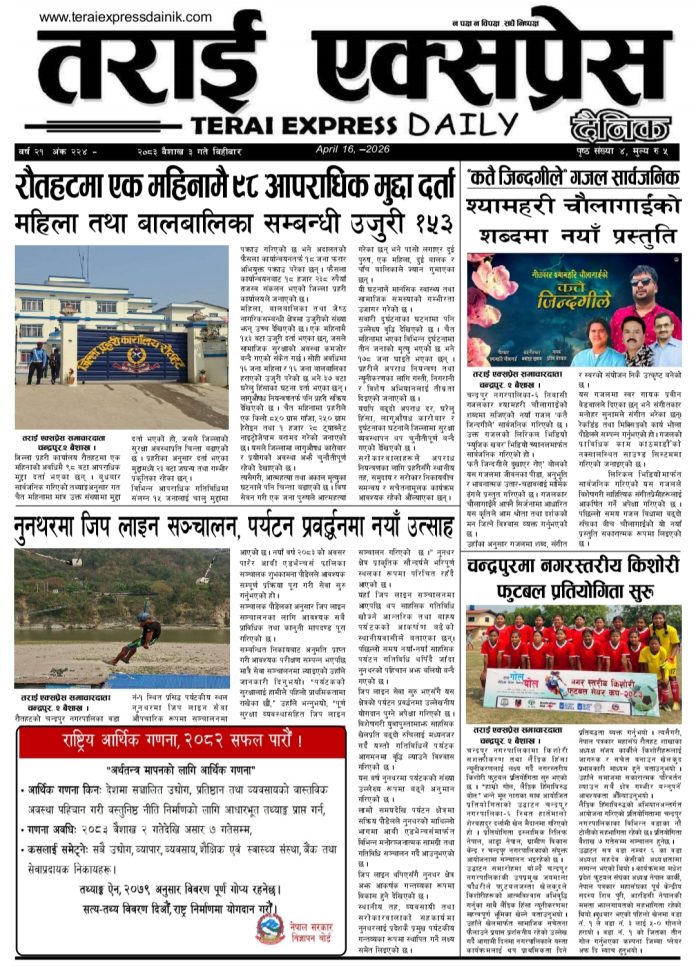 २०८२ चैत ३० गतेको तराई एक्सप्रेस दैनिक