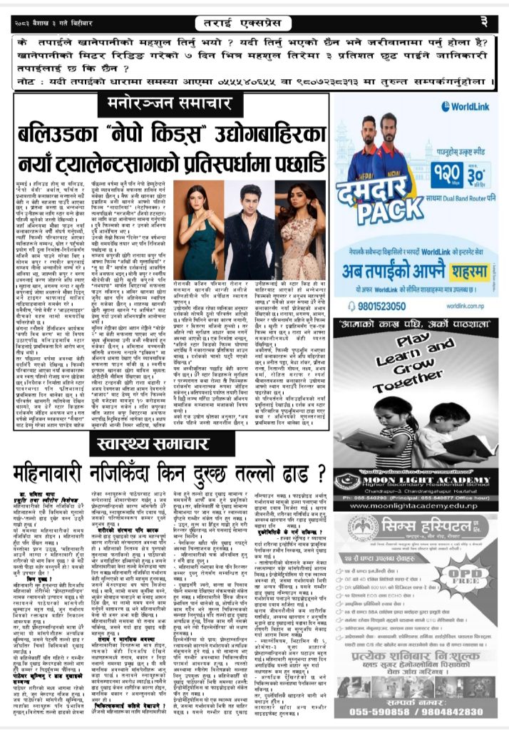 २०७३ वैशाख ३ गतेको तराई एक्सप्रेस दैनिक