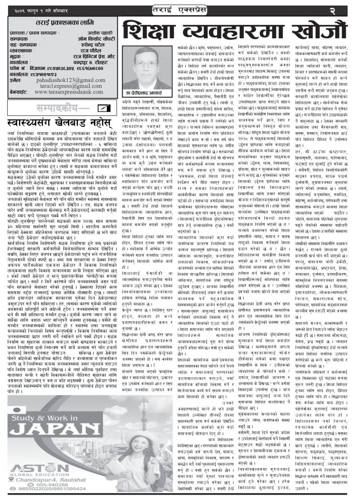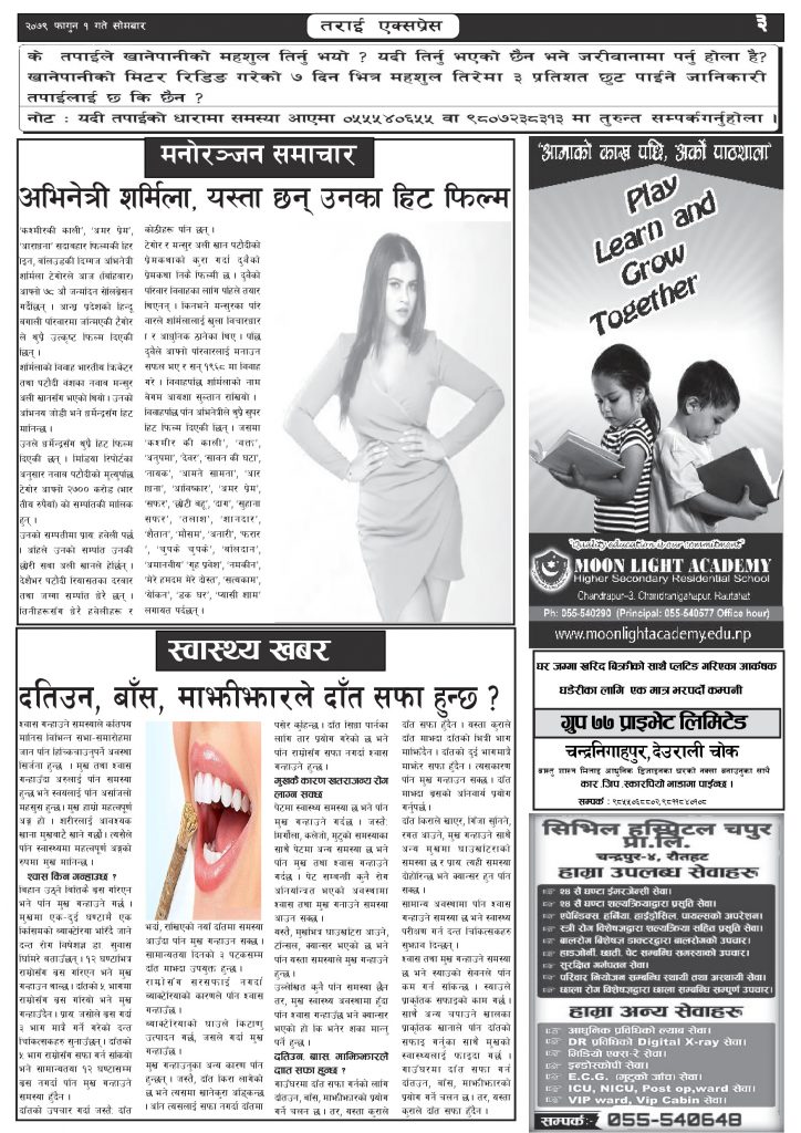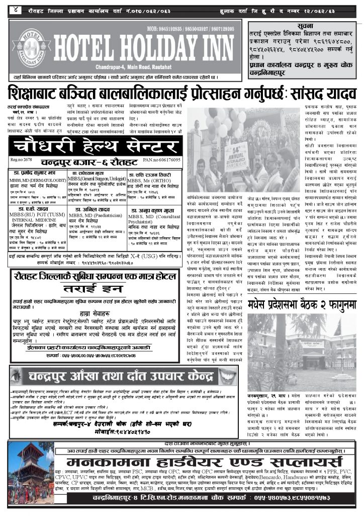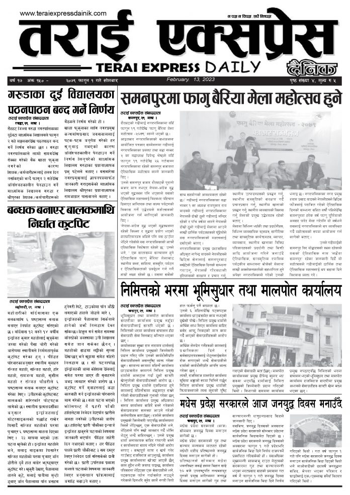 २०७९ फागुन १ गतेको तराई एक्सप्रेस दैनिक