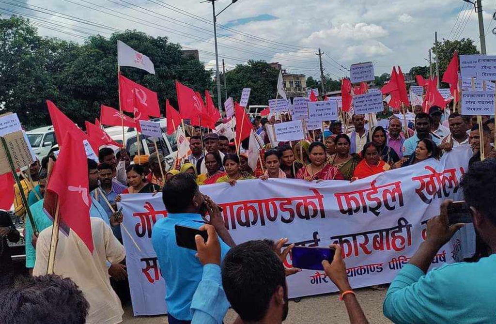Uncategorizedसमाचारसमाज गौर हत्याकाण्डका दोषीलाई कारबाहीको माग गर्दै प्रदर्शन तराई एक्सप्रेस दैनिक संवाददाता - July 18, 2023 १ साउन, जनकपुरधाम । गौर हत्याकाण्डका दोषीलाई कारबाहीको माग गर्दै गौरमा प्रदर्शन भएको छ । १६ वर्षअघि भएको गौर हत्याकाण्डमा २७ जनाको मृत्यु भएको थियो । RELATED ARTICLESMORE FROM AUTHOR राजमार्ग कब्जा गर्नेको दिन गयो: सरकार ‘एक्सन मोड’मा आजको राशिफल चन्द्रपुर १० का परियार पोखराबाट पक्राउ ताजा अपडेट २०७३ वैशाख ९ गतेको तराई एक्सप्रेस दैनिक April 22, 2026 राजमार्ग कब्जा गर्नेको दिन गयो: सरकार ‘एक्सन मोड’मा April 21, 2026 काजको आडमा असुली धन्धा : प्रहरीभित्रै ‘नेटवर्क’ चल्दै April 21, 2026 ओभरसियरले उल्टै थर्काए स्थानीय April 21, 2026 आजको राशिफल April 21, 2026 धेरैले पढेको २०७३ वैशाख ९ गतेको तराई एक्सप्रेस दैनिक April 22, 2026 राजमार्ग कब्जा गर्नेको दिन गयो: सरकार ‘एक्सन मोड’मा April 21, 2026 काजको आडमा असुली धन्धा : प्रहरीभित्रै ‘नेटवर्क’ चल्दै April 21, 2026 ओभरसियरले उल्टै थर्काए स्थानीय April 21, 2026 आजको राशिफल April 21, 2026