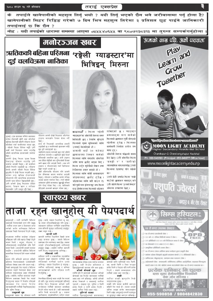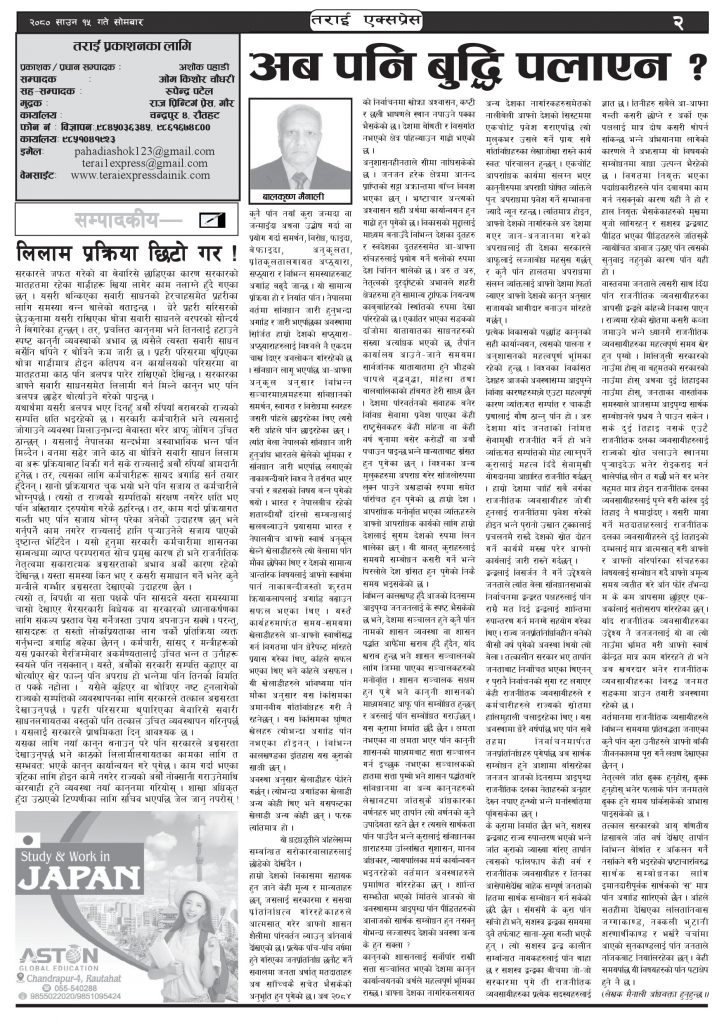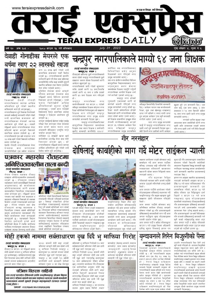 २०८० साउन १५ गतेको तराई एक्सप्रेस दैनिक