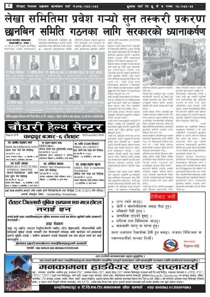 २०८३ वैशाख १३ गतेको तराई एक्सप्रेस दैनिक