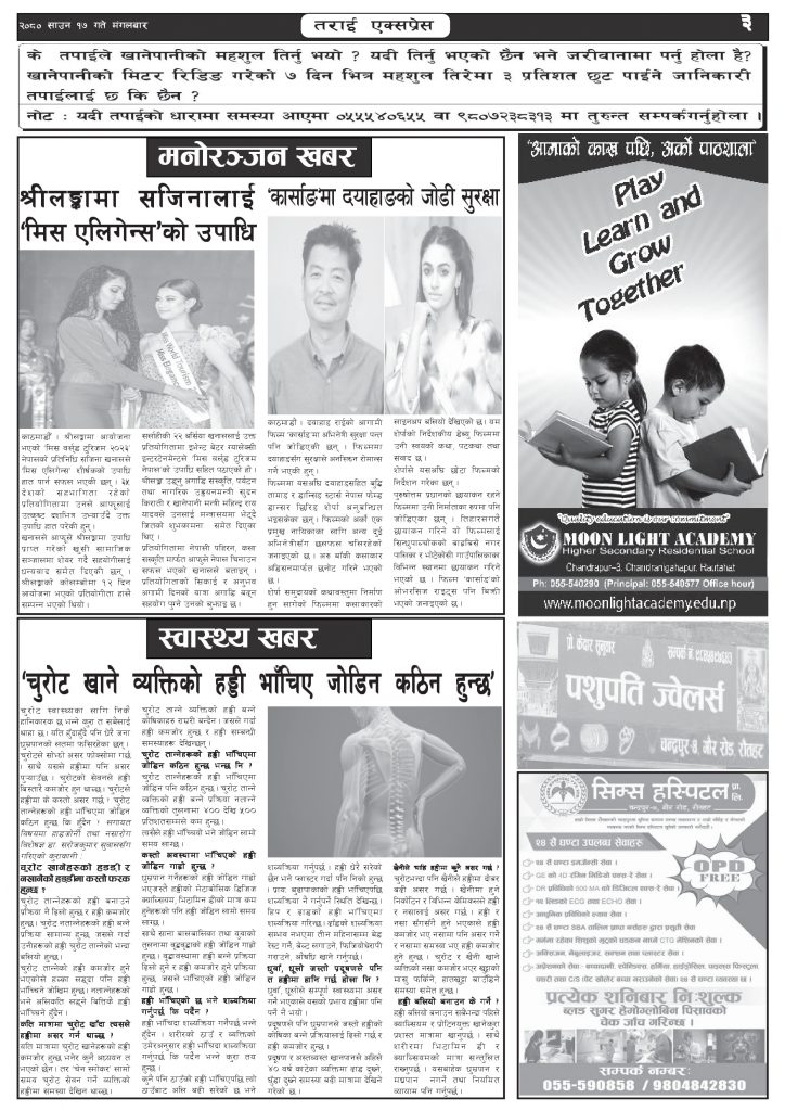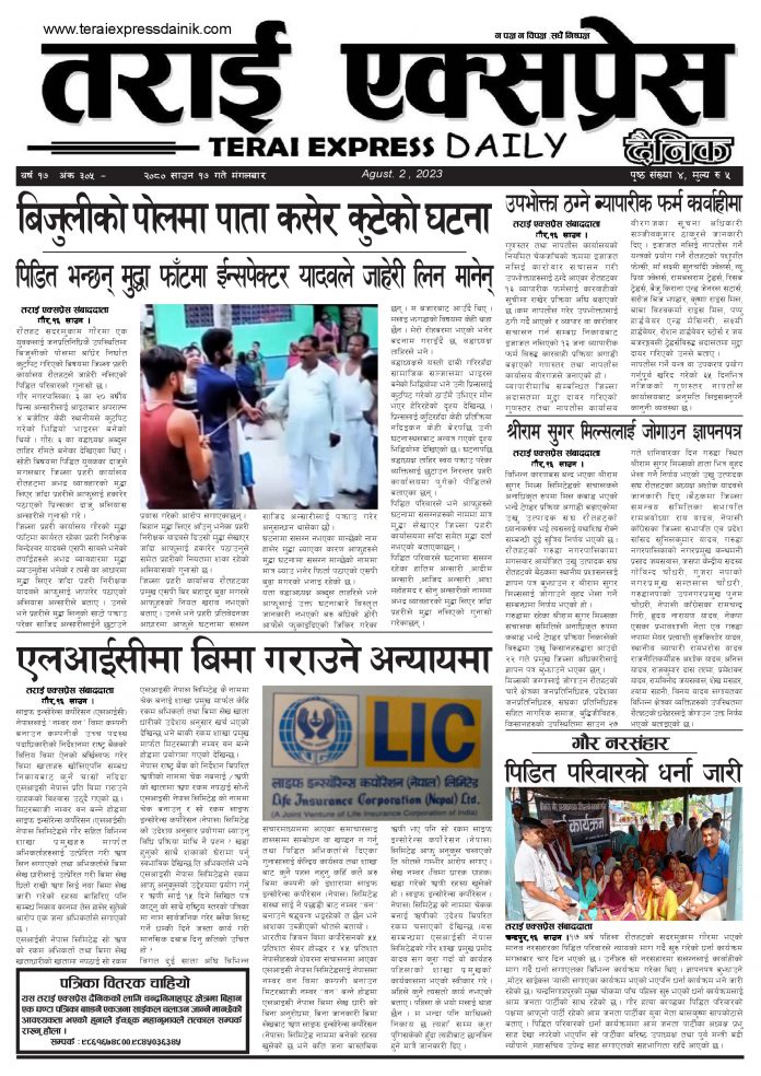 २०८० साउन १७ गतेको तराई एक्सप्रेस दैनिक