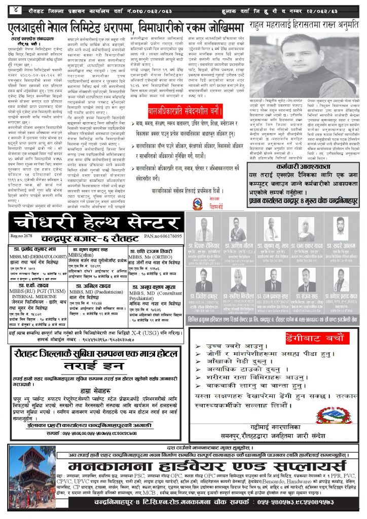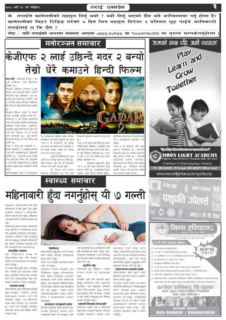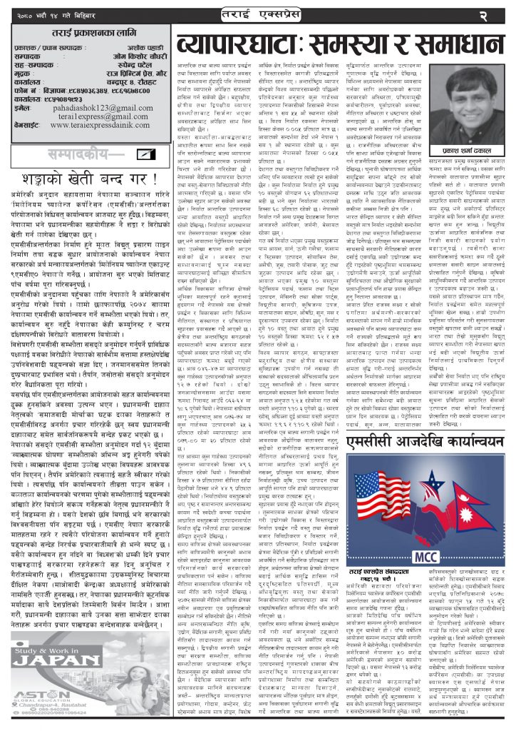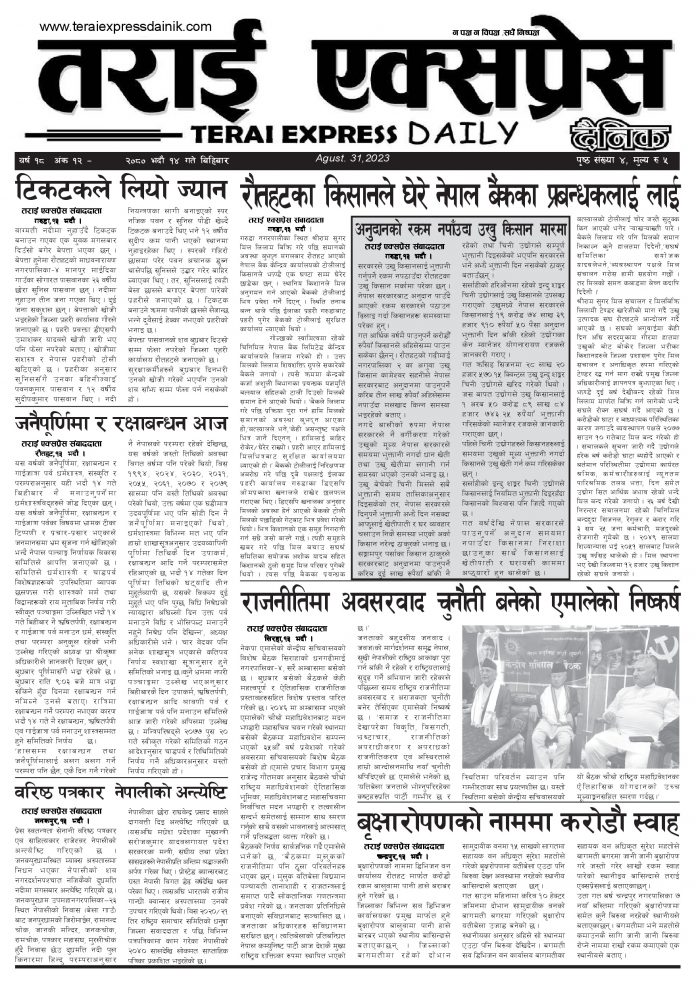 ई पेपरप्रदेशमधेश प्रदेशमुख्य समाचार २०८० भदौ १४ गतेको तराई एक्सप्रेस दैनिक तराई एक्सप्रेस दैनिक संवाददाता - August 31, 2023 RELATED ARTICLESMORE FROM AUTHOR यातायात व्यवस्था कार्यालय गौरमा सेवाग्राहीलाई ठगी गरेको आरोपमा एक जना पक्राउ २६ दिनमै ढल्यो गृहमन्त्रीको कुर्सी, सुधन गुरुङ ‘लगानी काण्ड’मा आउट! २०७३ वैशाख ९ गतेको तराई एक्सप्रेस दैनिक ताजा अपडेट ‘सेफ गल्र्स’ परियोजनाअन्तर्गत सेवा प्रदायक लक्षित पाँच दिने तालिम सम्पन्न April 23, 2026 यातायात व्यवस्था कार्यालय गौरमा सेवाग्राहीलाई ठगी गरेको आरोपमा एक जना पक्राउ April 22, 2026 जिल्ला धाउने दिन सकिने दाबी, व्यवहारमा कति सम्भव ? April 22, 2026 २६ दिनमै ढल्यो गृहमन्त्रीको कुर्सी, सुधन गुरुङ ‘लगानी काण्ड’मा आउट! April 22, 2026 २०७३ वैशाख ९ गतेको तराई एक्सप्रेस दैनिक April 22, 2026 धेरैले पढेको ‘सेफ गल्र्स’ परियोजनाअन्तर्गत सेवा प्रदायक लक्षित पाँच दिने तालिम सम्पन्न April 23, 2026 यातायात व्यवस्था कार्यालय गौरमा सेवाग्राहीलाई ठगी गरेको आरोपमा एक जना पक्राउ April 22, 2026 जिल्ला धाउने दिन सकिने दाबी, व्यवहारमा कति सम्भव ? April 22, 2026 २६ दिनमै ढल्यो गृहमन्त्रीको कुर्सी, सुधन गुरुङ ‘लगानी काण्ड’मा आउट! April 22, 2026 २०७३ वैशाख ९ गतेको तराई एक्सप्रेस दैनिक April 22, 2026