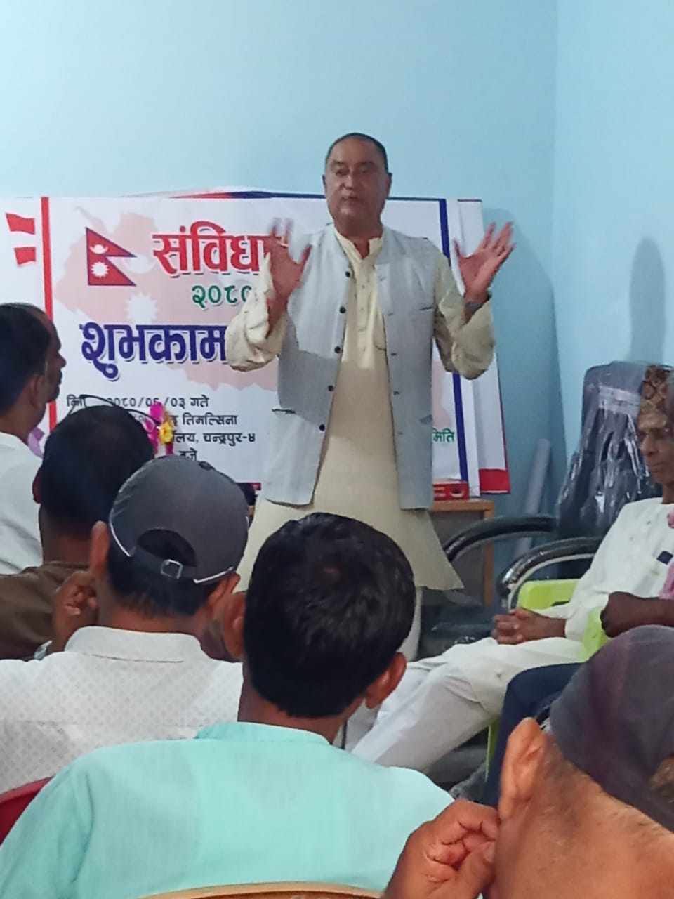 रौतहट,३ असोज । संबिधान दिवसका अवसरमाा नेपाली काग्रेस चन्द्रपुर नगर समितिले शुभकामना आदान प्रदान कार्यक्रम गरेको छ । सो कार्यक्रमका प्रमुख अतिथि नेपाली काग्रेसका नेता तथा रौतहट क्षेत्र नं ४ का संघिय ससद देव प्रसाद तिमल्सिना ले संविधान दिवसको शुभकामना दिएका थिए । नेपाली काग्रेस चन्द्रपुर नगर समिति सभापति मुकेश गिरीको सभाअध्यक्षतामा भएको कार्यक्रममा नेपाली काग्रेका स्थानीय नेताहरूको सहभागीता रहेको थियो ।