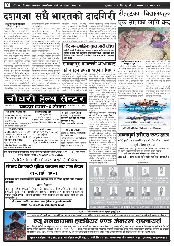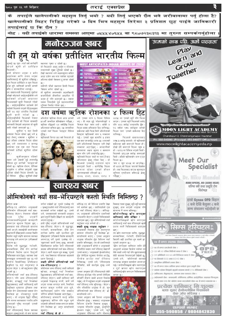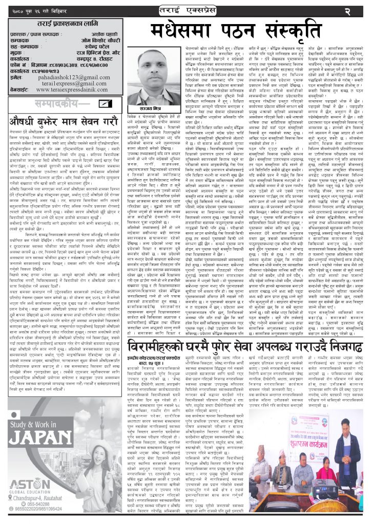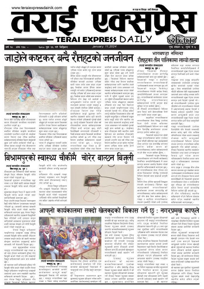 २०८० पुस २६ गतेको तराई एक्सप्रेस दैनिक