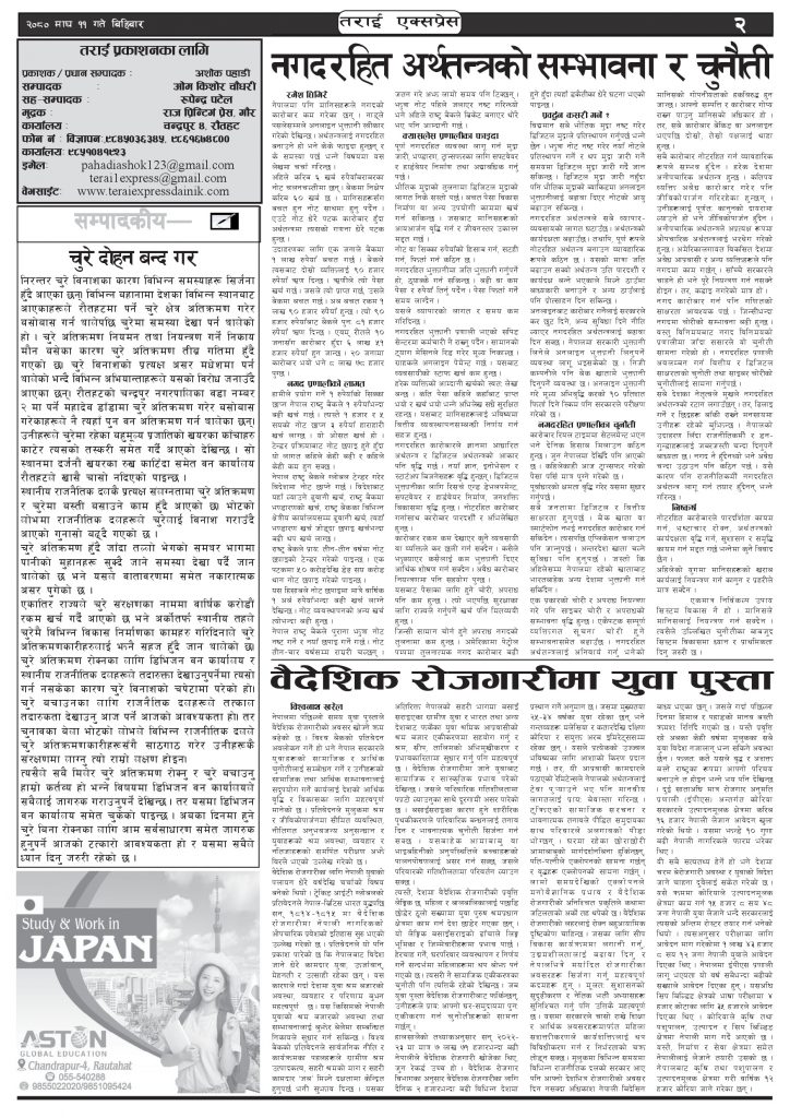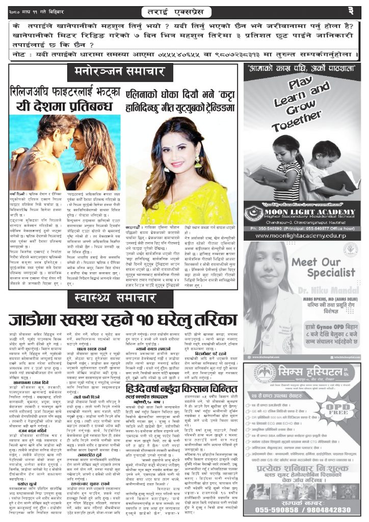 २०८० माघ ११ गतेको तराई एक्सप्रेस दैनिक