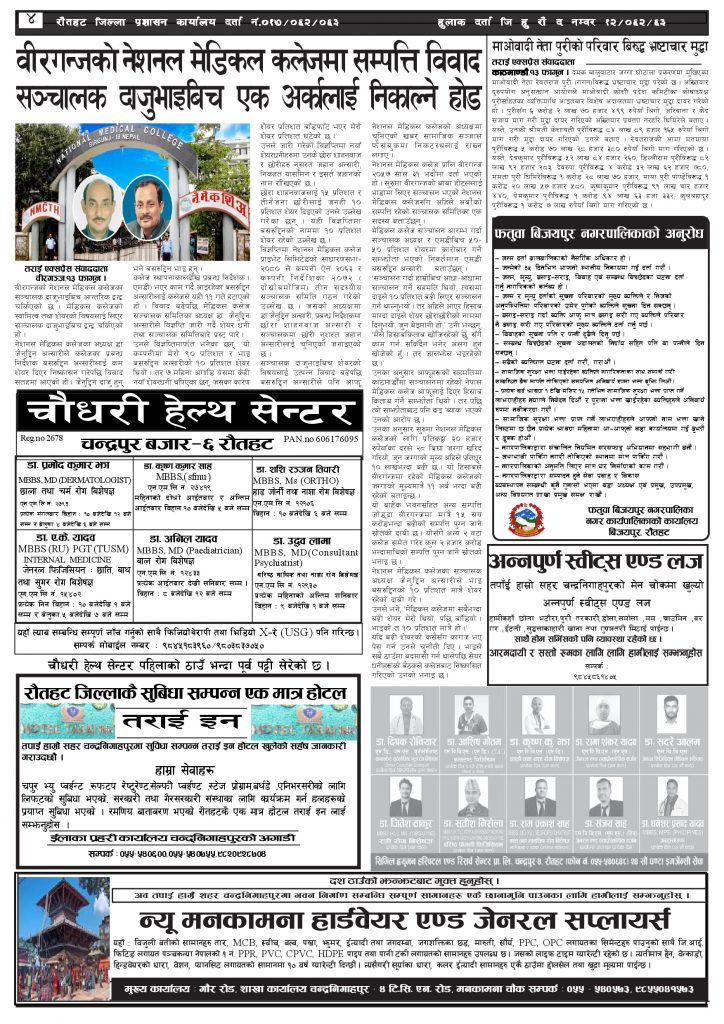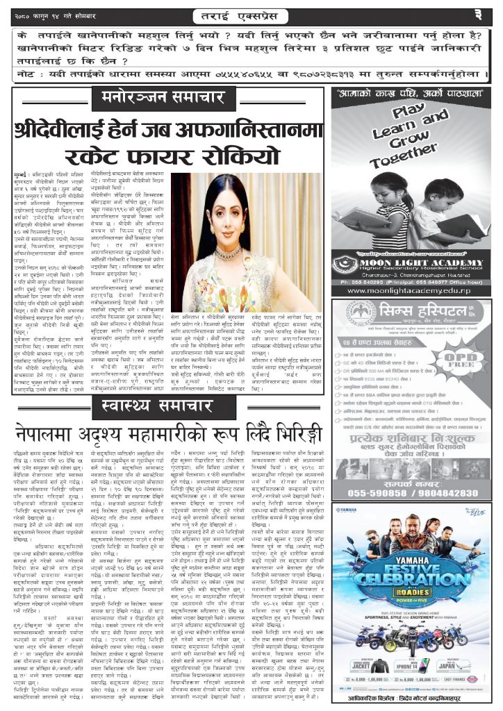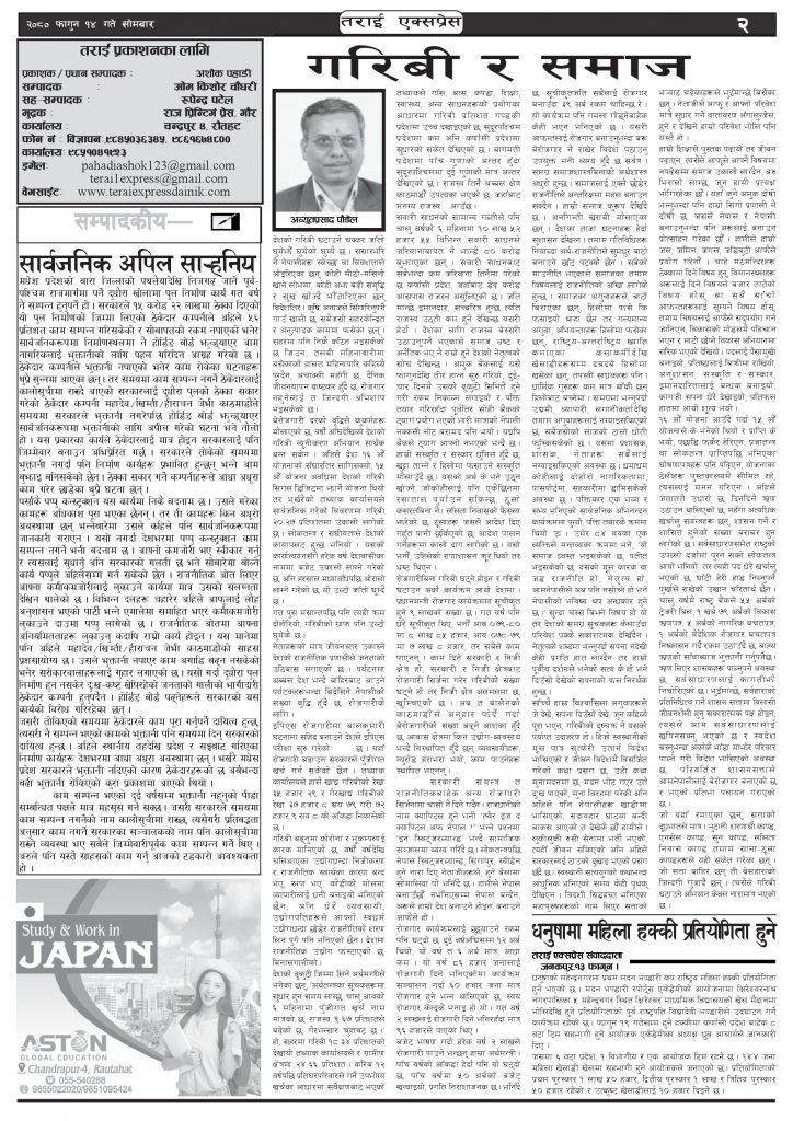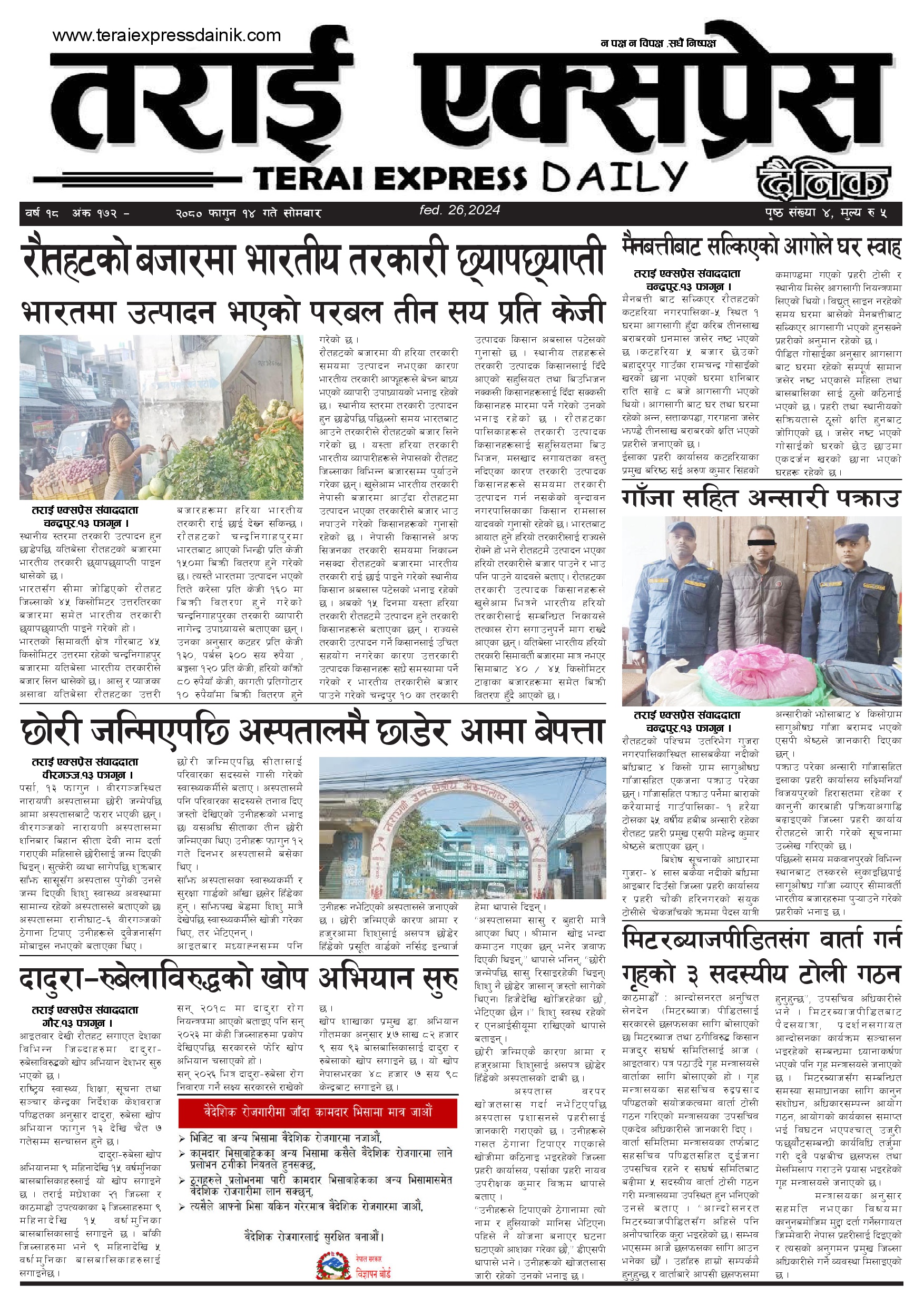 ई पेपरप्रदेशमधेश प्रदेशमुख्य समाचार २०८० फागुन १४ गतेको तराई एक्सप्रेस दैनिक तराई एक्सप्रेस दैनिक संवाददाता - February 26, 2024 RELATED ARTICLESMORE FROM AUTHOR ४० करोड कागज मिलाएको आरोपले मौलापुर ततायो यातायात व्यवस्था कार्यालय गौरमा सेवाग्राहीलाई ठगी गरेको आरोपमा एक जना पक्राउ २६ दिनमै ढल्यो गृहमन्त्रीको कुर्सी, सुधन गुरुङ ‘लगानी काण्ड’मा आउट! ताजा अपडेट ४० करोड कागज मिलाएको आरोपले मौलापुर ततायो April 23, 2026 ‘सेफ गल्र्स’ परियोजनाअन्तर्गत सेवा प्रदायक लक्षित पाँच दिने तालिम सम्पन्न April 23, 2026 यातायात व्यवस्था कार्यालय गौरमा सेवाग्राहीलाई ठगी गरेको आरोपमा एक जना पक्राउ April 22, 2026 जिल्ला धाउने दिन सकिने दाबी, व्यवहारमा कति सम्भव ? April 22, 2026 २६ दिनमै ढल्यो गृहमन्त्रीको कुर्सी, सुधन गुरुङ ‘लगानी काण्ड’मा आउट! April 22, 2026 धेरैले पढेको ४० करोड कागज मिलाएको आरोपले मौलापुर ततायो April 23, 2026 ‘सेफ गल्र्स’ परियोजनाअन्तर्गत सेवा प्रदायक लक्षित पाँच दिने तालिम सम्पन्न April 23, 2026 यातायात व्यवस्था कार्यालय गौरमा सेवाग्राहीलाई ठगी गरेको आरोपमा एक जना पक्राउ April 22, 2026 जिल्ला धाउने दिन सकिने दाबी, व्यवहारमा कति सम्भव ? April 22, 2026 २६ दिनमै ढल्यो गृहमन्त्रीको कुर्सी, सुधन गुरुङ ‘लगानी काण्ड’मा आउट! April 22, 2026