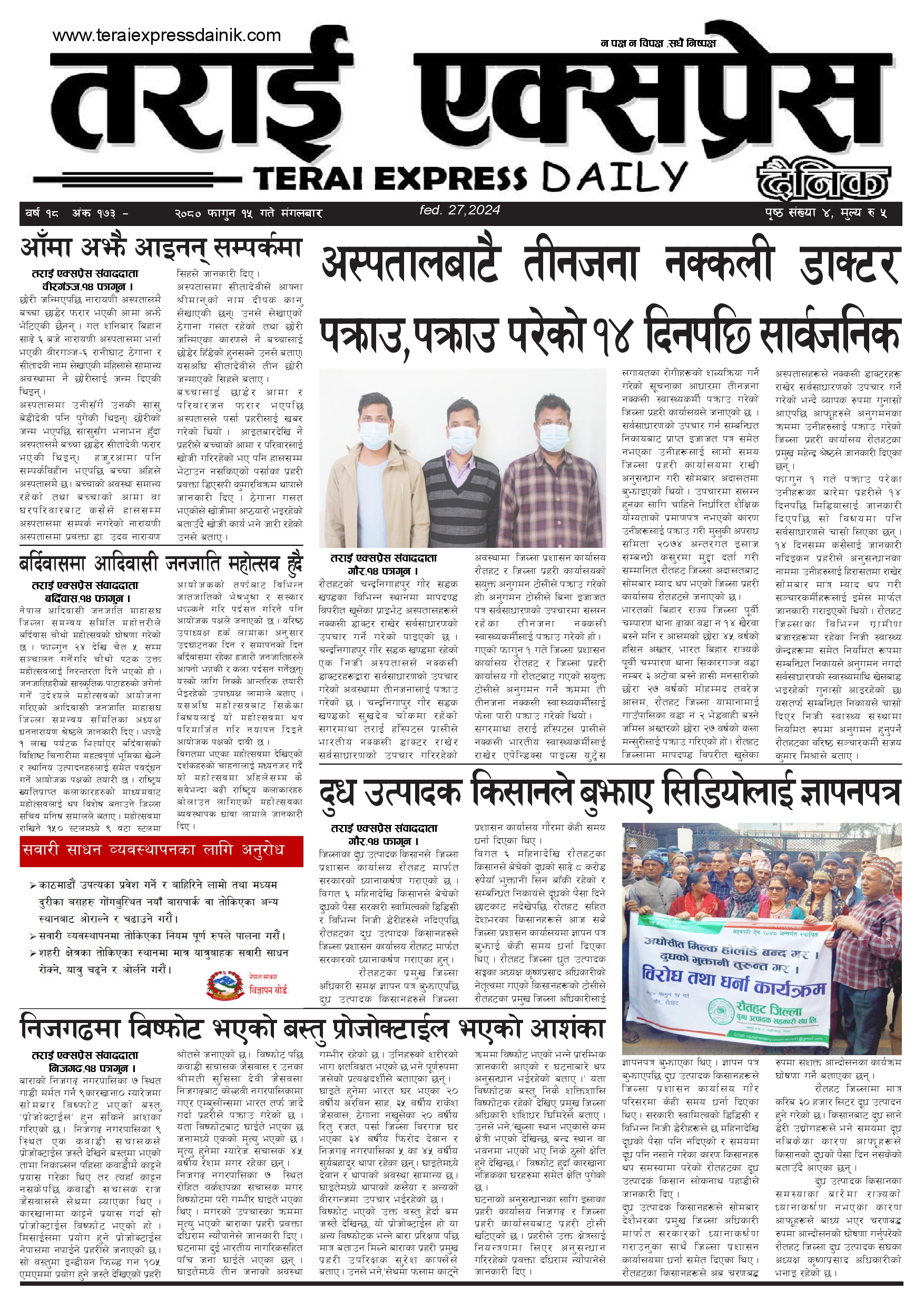 ई पेपरमुख्य समाचार २०८० फागुन १५ गतेको तराई एक्सप्रेस दैनिक तराई एक्सप्रेस दैनिक संवाददाता - February 27, 2024 RELATED ARTICLESMORE FROM AUTHOR २६ दिनमै ढल्यो गृहमन्त्रीको कुर्सी, सुधन गुरुङ ‘लगानी काण्ड’मा आउट! २०७३ वैशाख ९ गतेको तराई एक्सप्रेस दैनिक राजमार्ग कब्जा गर्नेको दिन गयो: सरकार ‘एक्सन मोड’मा ताजा अपडेट यातायात व्यवस्था कार्यालय गौरमा सेवाग्राहीलाई ठगी गरेको आरोपमा एक जना पक्राउ April 22, 2026 जिल्ला धाउने दिन सकिने दाबी, व्यवहारमा कति सम्भव ? April 22, 2026 २६ दिनमै ढल्यो गृहमन्त्रीको कुर्सी, सुधन गुरुङ ‘लगानी काण्ड’मा आउट! April 22, 2026 २०७३ वैशाख ९ गतेको तराई एक्सप्रेस दैनिक April 22, 2026 राजमार्ग कब्जा गर्नेको दिन गयो: सरकार ‘एक्सन मोड’मा April 21, 2026 धेरैले पढेको यातायात व्यवस्था कार्यालय गौरमा सेवाग्राहीलाई ठगी गरेको आरोपमा एक जना पक्राउ April 22, 2026 जिल्ला धाउने दिन सकिने दाबी, व्यवहारमा कति सम्भव ? April 22, 2026 २६ दिनमै ढल्यो गृहमन्त्रीको कुर्सी, सुधन गुरुङ ‘लगानी काण्ड’मा आउट! April 22, 2026 २०७३ वैशाख ९ गतेको तराई एक्सप्रेस दैनिक April 22, 2026 राजमार्ग कब्जा गर्नेको दिन गयो: सरकार ‘एक्सन मोड’मा April 21, 2026