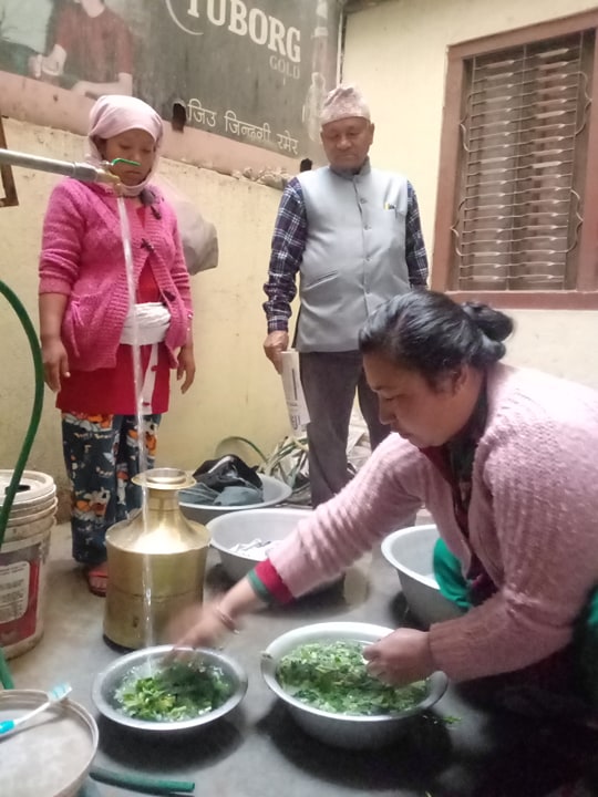 सिपाडोल बृहत खानेपानी तथा सरसफाई उपभोक्ता समितिको उपसमिति १ सिपाडोलबाट वडाको जगातीस्थित एउटा निजी घरमा वितरित धारामा आएको पानीबाट तरकारी पखाल्दै महिला ।