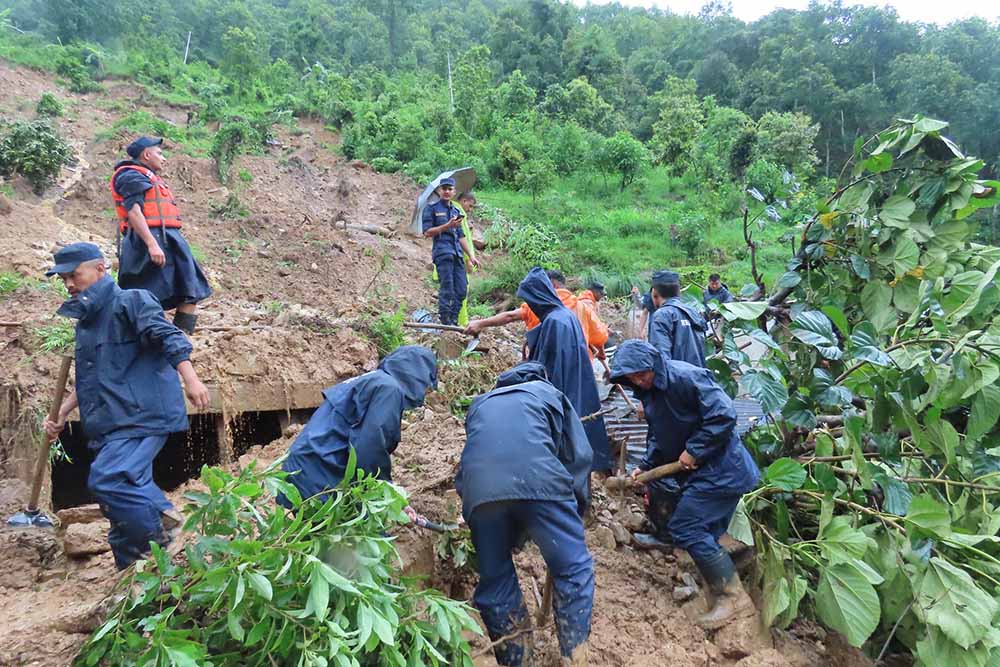 साथै बाढी पहिरोको जोखिममा रहेका विभिन्न जिल्लाका विभिन्न घर परिवारलाई सुरक्षित स्थानमा राख्ने, पहिरोमा पुरिएका धनमाल निकालेर सुरक्षा गर्ने काम समेत विभिन्न निकाय र स्थानीयबासीको समन्वय र सहयोगमा गर्नुका साथै विभिन्न स्थानमा भएको बाटो अवरोध हटाउने कार्य समेत प्रहरीले गरिरहेको छ ।