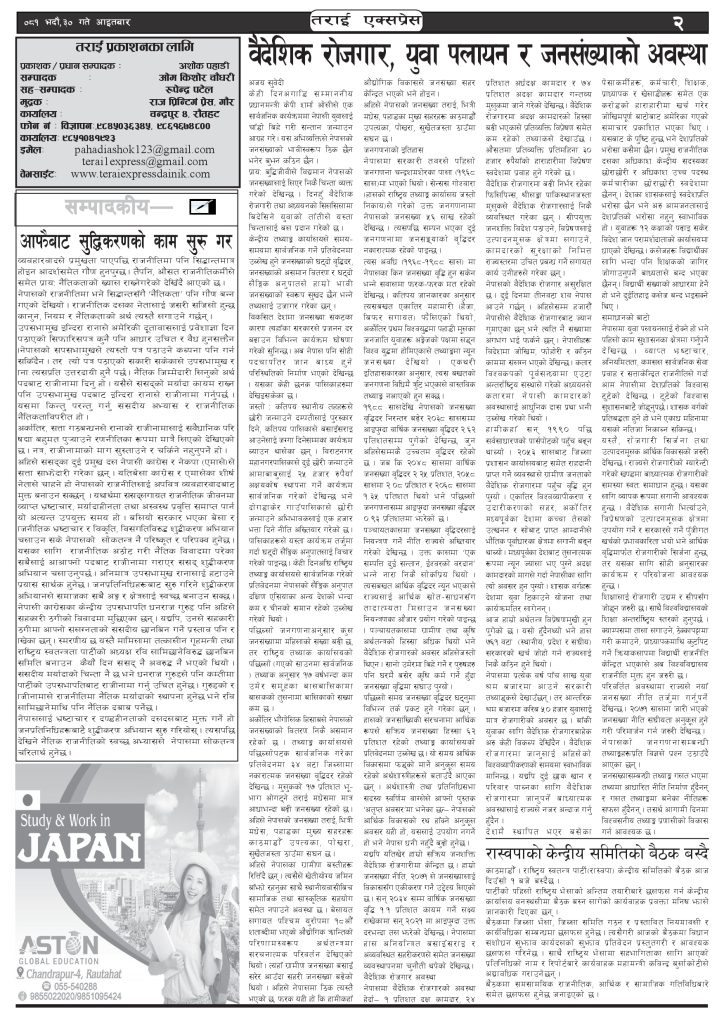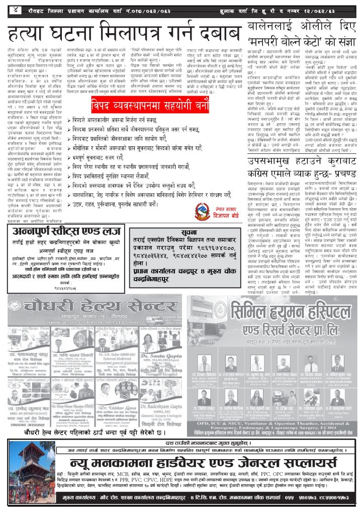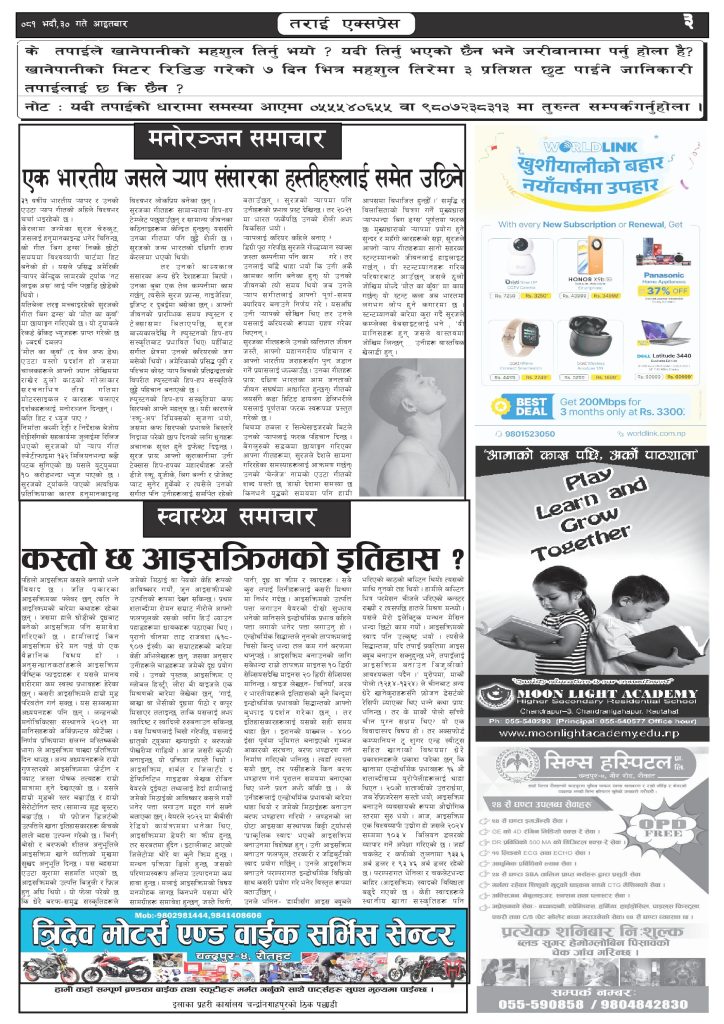 ई पेपरप्रदेशमधेश प्रदेशमुख्य समाचार २०८१ भदौ ३० गतेको तराई एक्सप्रेस दैनिक तराई एक्सप्रेस दैनिक - September 15, 2024 RELATED ARTICLESMORE FROM AUTHOR २०७३ वैशाख ९ गतेको तराई एक्सप्रेस दैनिक राजमार्ग कब्जा गर्नेको दिन गयो: सरकार ‘एक्सन मोड’मा काजको आडमा असुली धन्धा : प्रहरीभित्रै ‘नेटवर्क’ चल्दै ताजा अपडेट २०७३ वैशाख ९ गतेको तराई एक्सप्रेस दैनिक April 22, 2026 राजमार्ग कब्जा गर्नेको दिन गयो: सरकार ‘एक्सन मोड’मा April 21, 2026 काजको आडमा असुली धन्धा : प्रहरीभित्रै ‘नेटवर्क’ चल्दै April 21, 2026 ओभरसियरले उल्टै थर्काए स्थानीय April 21, 2026 आजको राशिफल April 21, 2026 धेरैले पढेको २०७३ वैशाख ९ गतेको तराई एक्सप्रेस दैनिक April 22, 2026 राजमार्ग कब्जा गर्नेको दिन गयो: सरकार ‘एक्सन मोड’मा April 21, 2026 काजको आडमा असुली धन्धा : प्रहरीभित्रै ‘नेटवर्क’ चल्दै April 21, 2026 ओभरसियरले उल्टै थर्काए स्थानीय April 21, 2026 आजको राशिफल April 21, 2026