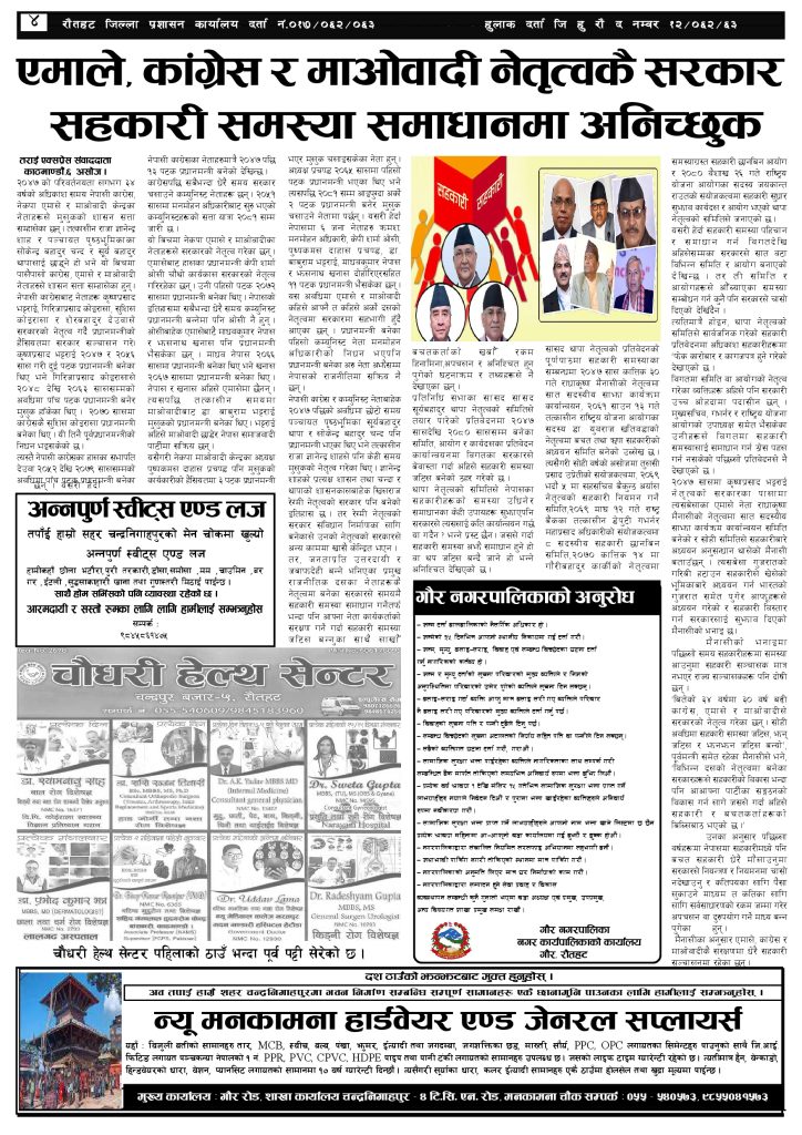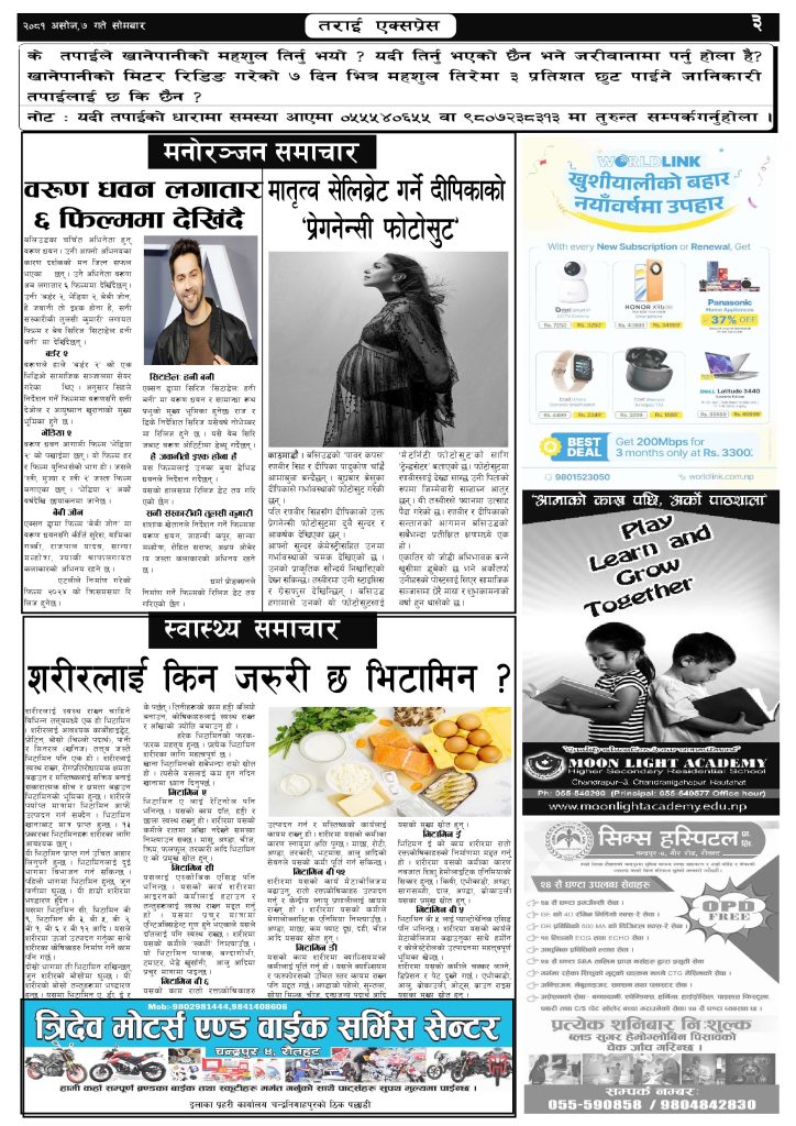 ई पेपरप्रदेशमधेश प्रदेशमुख्य समाचार २०८१ असोज ७ गतेको तराई एक्सप्रेस दैनिक तराई एक्सप्रेस दैनिक - September 23, 2024 RELATED ARTICLESMORE FROM AUTHOR ४० करोड कागज मिलाएको आरोपले मौलापुर ततायो यातायात व्यवस्था कार्यालय गौरमा सेवाग्राहीलाई ठगी गरेको आरोपमा एक जना पक्राउ २६ दिनमै ढल्यो गृहमन्त्रीको कुर्सी, सुधन गुरुङ ‘लगानी काण्ड’मा आउट! ताजा अपडेट ४० करोड कागज मिलाएको आरोपले मौलापुर ततायो April 23, 2026 ‘सेफ गल्र्स’ परियोजनाअन्तर्गत सेवा प्रदायक लक्षित पाँच दिने तालिम सम्पन्न April 23, 2026 यातायात व्यवस्था कार्यालय गौरमा सेवाग्राहीलाई ठगी गरेको आरोपमा एक जना पक्राउ April 22, 2026 जिल्ला धाउने दिन सकिने दाबी, व्यवहारमा कति सम्भव ? April 22, 2026 २६ दिनमै ढल्यो गृहमन्त्रीको कुर्सी, सुधन गुरुङ ‘लगानी काण्ड’मा आउट! April 22, 2026 धेरैले पढेको ४० करोड कागज मिलाएको आरोपले मौलापुर ततायो April 23, 2026 ‘सेफ गल्र्स’ परियोजनाअन्तर्गत सेवा प्रदायक लक्षित पाँच दिने तालिम सम्पन्न April 23, 2026 यातायात व्यवस्था कार्यालय गौरमा सेवाग्राहीलाई ठगी गरेको आरोपमा एक जना पक्राउ April 22, 2026 जिल्ला धाउने दिन सकिने दाबी, व्यवहारमा कति सम्भव ? April 22, 2026 २६ दिनमै ढल्यो गृहमन्त्रीको कुर्सी, सुधन गुरुङ ‘लगानी काण्ड’मा आउट! April 22, 2026