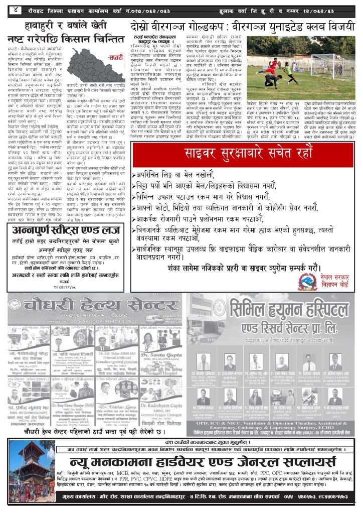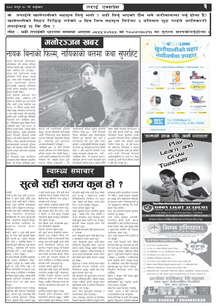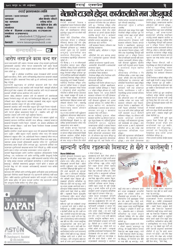 ई पेपर २०८१ फागुन १८ गतेको तराई एक्सप्रेस दैनिक तराई एक्सप्रेस दैनिक - March 2, 2025 RELATED ARTICLESMORE FROM AUTHOR २०७३ वैशाख ९ गतेको तराई एक्सप्रेस दैनिक २०८२ वैशाख ८ गतेको तराई एक्सप्रेस दैनिक २०७३ वैशाख ३ गतेको तराई एक्सप्रेस दैनिक ताजा अपडेट २०७३ वैशाख ९ गतेको तराई एक्सप्रेस दैनिक April 22, 2026 राजमार्ग कब्जा गर्नेको दिन गयो: सरकार ‘एक्सन मोड’मा April 21, 2026 काजको आडमा असुली धन्धा : प्रहरीभित्रै ‘नेटवर्क’ चल्दै April 21, 2026 ओभरसियरले उल्टै थर्काए स्थानीय April 21, 2026 आजको राशिफल April 21, 2026 धेरैले पढेको २०७३ वैशाख ९ गतेको तराई एक्सप्रेस दैनिक April 22, 2026 राजमार्ग कब्जा गर्नेको दिन गयो: सरकार ‘एक्सन मोड’मा April 21, 2026 काजको आडमा असुली धन्धा : प्रहरीभित्रै ‘नेटवर्क’ चल्दै April 21, 2026 ओभरसियरले उल्टै थर्काए स्थानीय April 21, 2026 आजको राशिफल April 21, 2026
