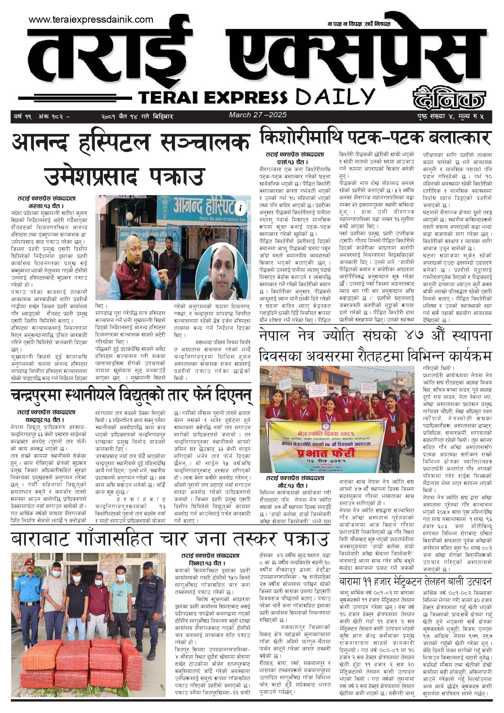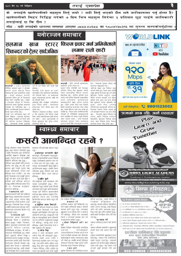 ई पेपर २०८१ चैत १४ गतेको तराई एक्सप्रेस दैनिक तराई एक्सप्रेस दैनिक - March 27, 2025 RELATED ARTICLESMORE FROM AUTHOR २०७३ वैशाख ९ गतेको तराई एक्सप्रेस दैनिक २०८२ वैशाख ८ गतेको तराई एक्सप्रेस दैनिक २०७३ वैशाख ३ गतेको तराई एक्सप्रेस दैनिक ताजा अपडेट २०७३ वैशाख ९ गतेको तराई एक्सप्रेस दैनिक April 22, 2026 राजमार्ग कब्जा गर्नेको दिन गयो: सरकार ‘एक्सन मोड’मा April 21, 2026 काजको आडमा असुली धन्धा : प्रहरीभित्रै ‘नेटवर्क’ चल्दै April 21, 2026 ओभरसियरले उल्टै थर्काए स्थानीय April 21, 2026 आजको राशिफल April 21, 2026 धेरैले पढेको २०७३ वैशाख ९ गतेको तराई एक्सप्रेस दैनिक April 22, 2026 राजमार्ग कब्जा गर्नेको दिन गयो: सरकार ‘एक्सन मोड’मा April 21, 2026 काजको आडमा असुली धन्धा : प्रहरीभित्रै ‘नेटवर्क’ चल्दै April 21, 2026 ओभरसियरले उल्टै थर्काए स्थानीय April 21, 2026 आजको राशिफल April 21, 2026