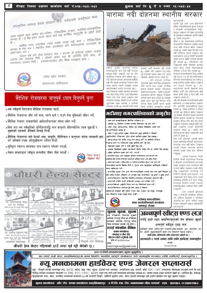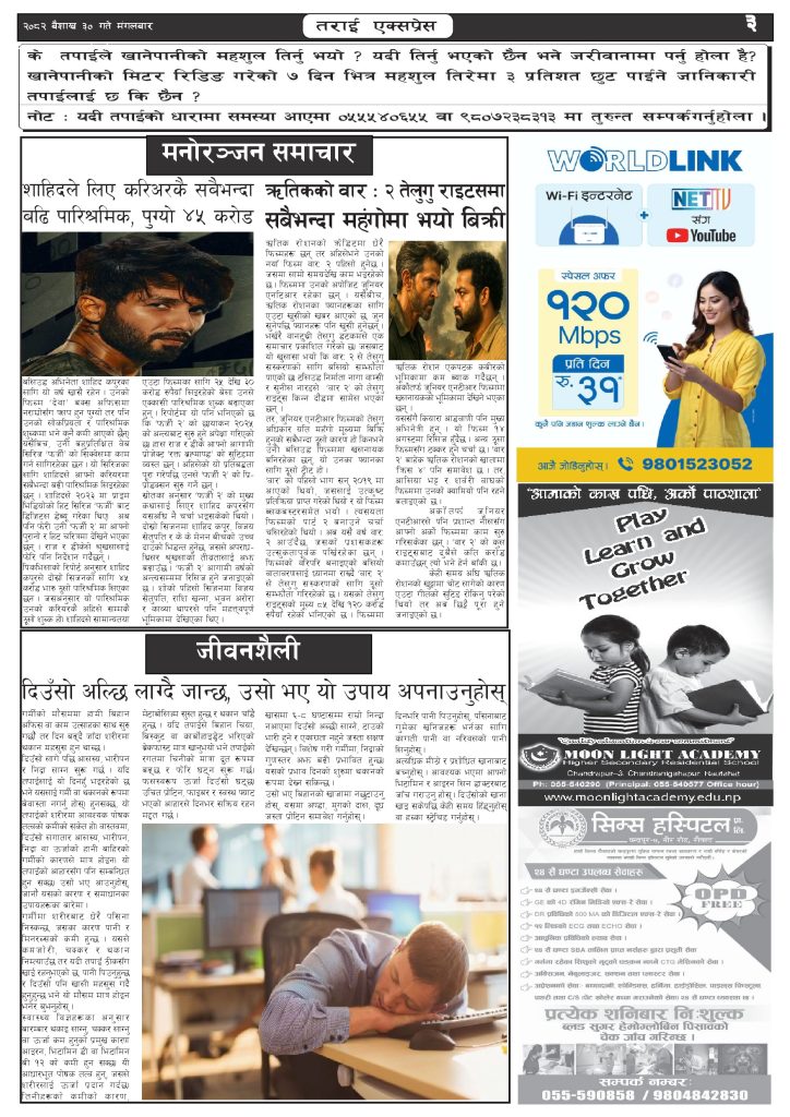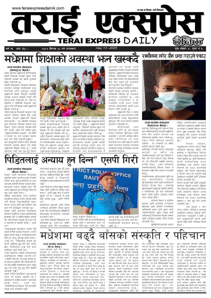 ई पेपर २०८२ बैशाख ३० गतेको तराई एक्सप्रेस दैनिक तराई एक्सप्रेस दैनिक - May 13, 2025 RELATED ARTICLESMORE FROM AUTHOR २०७३ वैशाख ९ गतेको तराई एक्सप्रेस दैनिक २०८२ वैशाख ८ गतेको तराई एक्सप्रेस दैनिक २०७३ वैशाख ३ गतेको तराई एक्सप्रेस दैनिक ताजा अपडेट २०७३ वैशाख ९ गतेको तराई एक्सप्रेस दैनिक April 22, 2026 राजमार्ग कब्जा गर्नेको दिन गयो: सरकार ‘एक्सन मोड’मा April 21, 2026 काजको आडमा असुली धन्धा : प्रहरीभित्रै ‘नेटवर्क’ चल्दै April 21, 2026 ओभरसियरले उल्टै थर्काए स्थानीय April 21, 2026 आजको राशिफल April 21, 2026 धेरैले पढेको २०७३ वैशाख ९ गतेको तराई एक्सप्रेस दैनिक April 22, 2026 राजमार्ग कब्जा गर्नेको दिन गयो: सरकार ‘एक्सन मोड’मा April 21, 2026 काजको आडमा असुली धन्धा : प्रहरीभित्रै ‘नेटवर्क’ चल्दै April 21, 2026 ओभरसियरले उल्टै थर्काए स्थानीय April 21, 2026 आजको राशिफल April 21, 2026