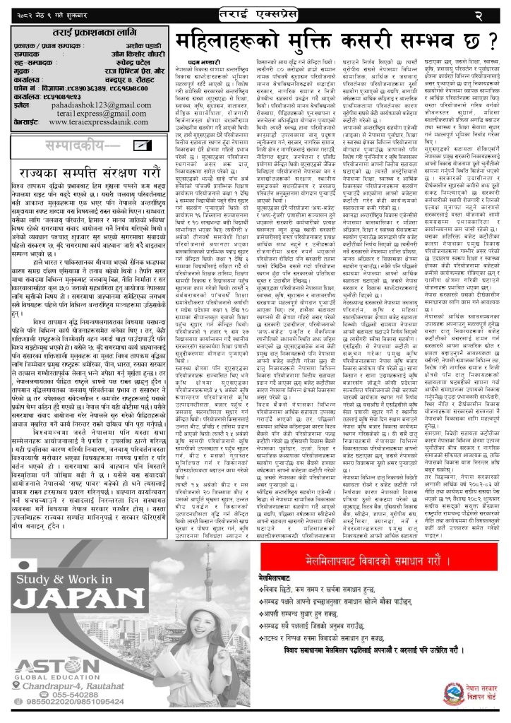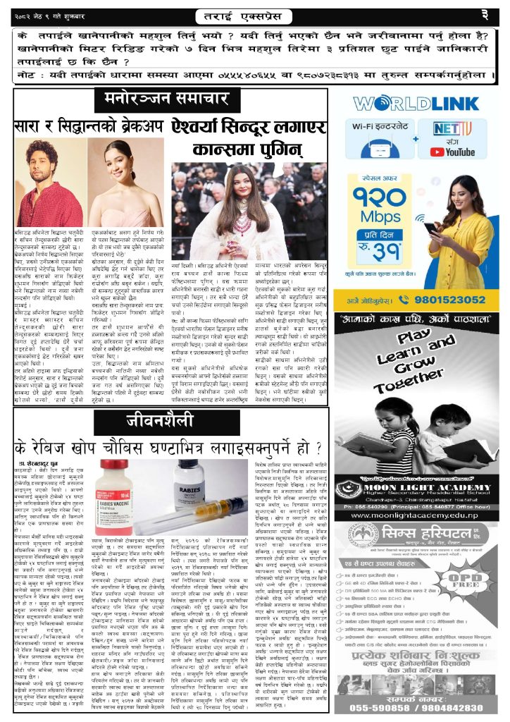 ई पेपर २०८२ जेठ ९ गतेको तराई एक्सप्रेस दैनिक तराई एक्सप्रेस दैनिक - May 23, 2025 RELATED ARTICLESMORE FROM AUTHOR २०७३ वैशाख ९ गतेको तराई एक्सप्रेस दैनिक २०८२ वैशाख ८ गतेको तराई एक्सप्रेस दैनिक २०७३ वैशाख ३ गतेको तराई एक्सप्रेस दैनिक ताजा अपडेट २०७३ वैशाख ९ गतेको तराई एक्सप्रेस दैनिक April 22, 2026 राजमार्ग कब्जा गर्नेको दिन गयो: सरकार ‘एक्सन मोड’मा April 21, 2026 काजको आडमा असुली धन्धा : प्रहरीभित्रै ‘नेटवर्क’ चल्दै April 21, 2026 ओभरसियरले उल्टै थर्काए स्थानीय April 21, 2026 आजको राशिफल April 21, 2026 धेरैले पढेको २०७३ वैशाख ९ गतेको तराई एक्सप्रेस दैनिक April 22, 2026 राजमार्ग कब्जा गर्नेको दिन गयो: सरकार ‘एक्सन मोड’मा April 21, 2026 काजको आडमा असुली धन्धा : प्रहरीभित्रै ‘नेटवर्क’ चल्दै April 21, 2026 ओभरसियरले उल्टै थर्काए स्थानीय April 21, 2026 आजको राशिफल April 21, 2026