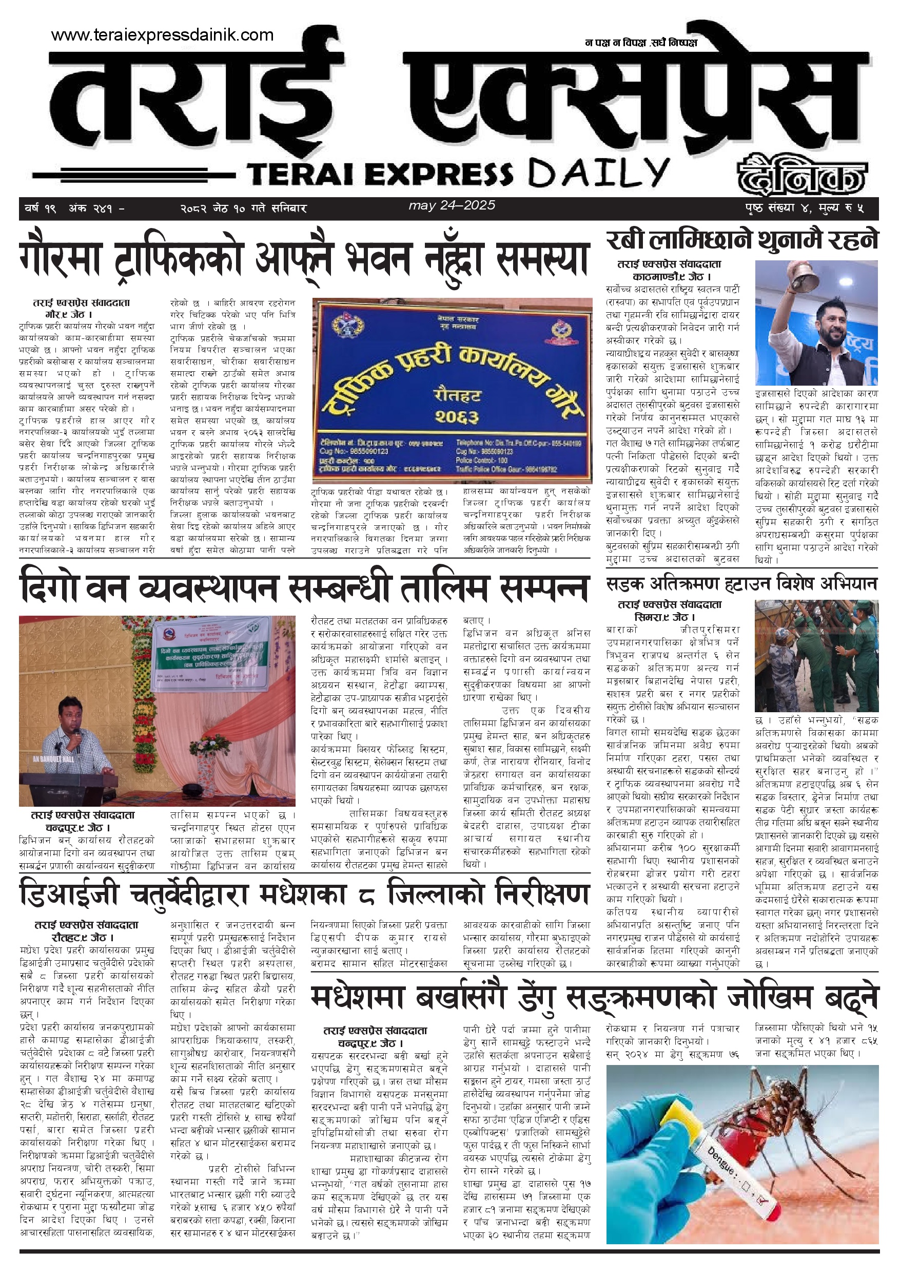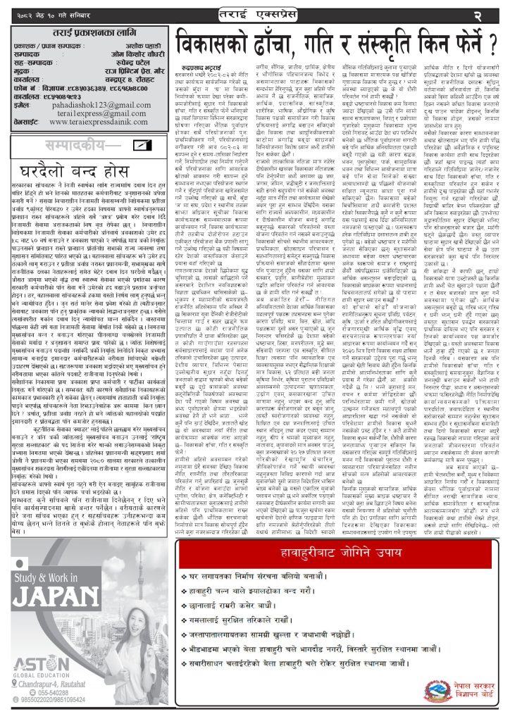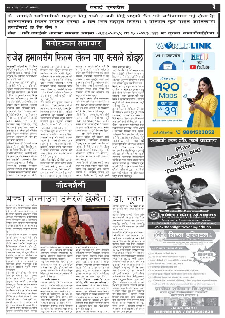 ई पेपर २०८२ जेठ १० गतेको तराई एक्सप्रेस दैनिक तराई एक्सप्रेस दैनिक - May 24, 2025 RELATED ARTICLESMORE FROM AUTHOR २०७३ वैशाख ९ गतेको तराई एक्सप्रेस दैनिक २०८२ वैशाख ८ गतेको तराई एक्सप्रेस दैनिक २०७३ वैशाख ३ गतेको तराई एक्सप्रेस दैनिक ताजा अपडेट जिल्ला धाउने दिन सकिने दाबी, व्यवहारमा कति सम्भव ? April 22, 2026 २६ दिनमै ढल्यो गृहमन्त्रीको कुर्सी, सुधन गुरुङ ‘लगानी काण्ड’मा आउट! April 22, 2026 २०७३ वैशाख ९ गतेको तराई एक्सप्रेस दैनिक April 22, 2026 राजमार्ग कब्जा गर्नेको दिन गयो: सरकार ‘एक्सन मोड’मा April 21, 2026 काजको आडमा असुली धन्धा : प्रहरीभित्रै ‘नेटवर्क’ चल्दै April 21, 2026 धेरैले पढेको जिल्ला धाउने दिन सकिने दाबी, व्यवहारमा कति सम्भव ? April 22, 2026 २६ दिनमै ढल्यो गृहमन्त्रीको कुर्सी, सुधन गुरुङ ‘लगानी काण्ड’मा आउट! April 22, 2026 २०७३ वैशाख ९ गतेको तराई एक्सप्रेस दैनिक April 22, 2026 राजमार्ग कब्जा गर्नेको दिन गयो: सरकार ‘एक्सन मोड’मा April 21, 2026 काजको आडमा असुली धन्धा : प्रहरीभित्रै ‘नेटवर्क’ चल्दै April 21, 2026