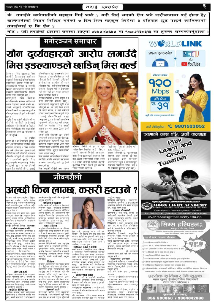 २०७३ वैशाख ३ गतेको तराई एक्सप्रेस दैनिक