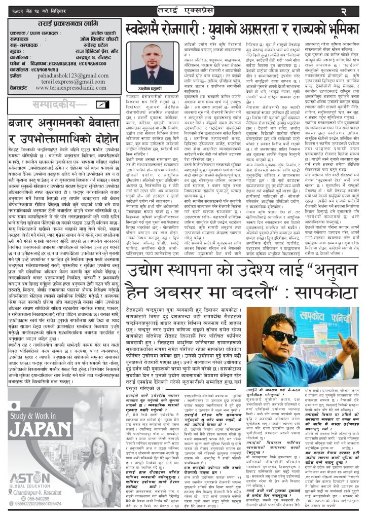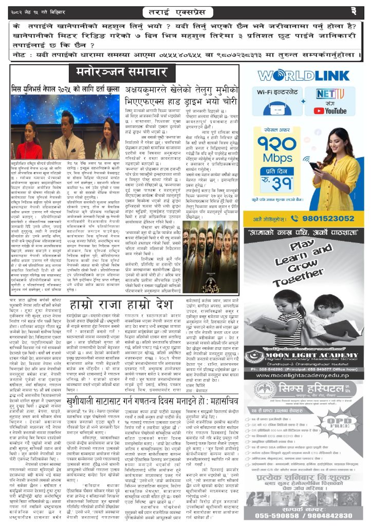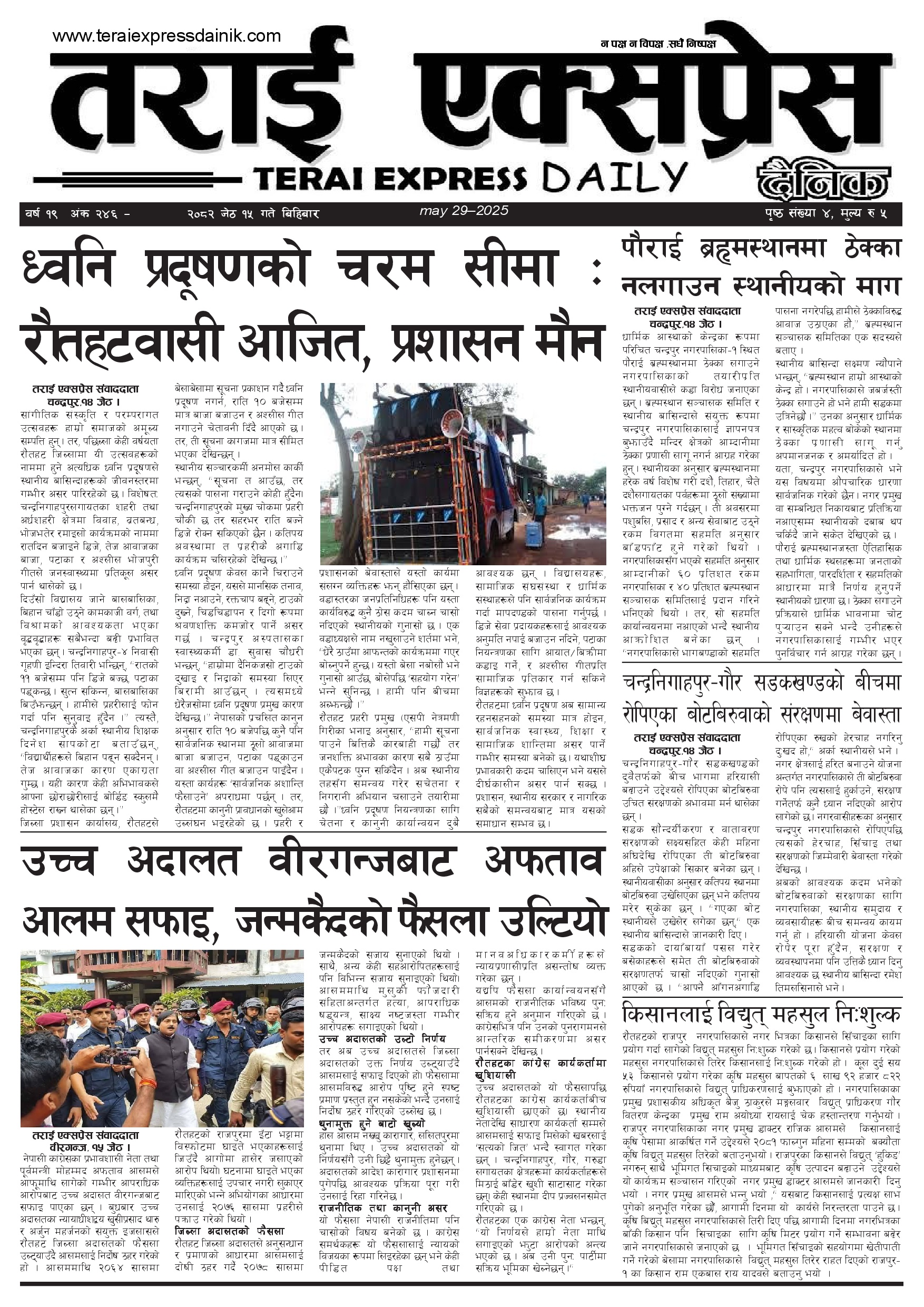 ई पेपरप्रदेशमधेश प्रदेशमुख्य समाचार २०८२ जेठ १५ गतेको तराई एक्सप्रेस दैनिक तराई एक्सप्रेस दैनिक - May 29, 2025 RELATED ARTICLESMORE FROM AUTHOR “बत्ती गयो, सेवा गयो : कटहरियामा प्रशासनदेखि पानीसम्म ठप्प” सिमारक्षकलाई नै सास्ती, सरकारको नीतिप्रति आलमको चिन्ता चन्द्रपुरबाट बोकाचोर पक्राउ ताजा अपडेट गौरमा अटो नियन्त्रण प्रयास असफल April 20, 2026 ‘जान्नेलाई छान्ने’ नारा नै धरापमा, रास्वपा मन्त्रीहरू एकपछि अर्को विवादमा April 20, 2026 “बत्ती गयो, सेवा गयो : कटहरियामा प्रशासनदेखि पानीसम्म ठप्प” April 20, 2026 सिमारक्षकलाई नै सास्ती, सरकारको नीतिप्रति आलमको चिन्ता April 18, 2026 चन्द्रपुरबाट बोकाचोर पक्राउ April 18, 2026 धेरैले पढेको गौरमा अटो नियन्त्रण प्रयास असफल April 20, 2026 ‘जान्नेलाई छान्ने’ नारा नै धरापमा, रास्वपा मन्त्रीहरू एकपछि अर्को विवादमा April 20, 2026 “बत्ती गयो, सेवा गयो : कटहरियामा प्रशासनदेखि पानीसम्म ठप्प” April 20, 2026 सिमारक्षकलाई नै सास्ती, सरकारको नीतिप्रति आलमको चिन्ता April 18, 2026 चन्द्रपुरबाट बोकाचोर पक्राउ April 18, 2026