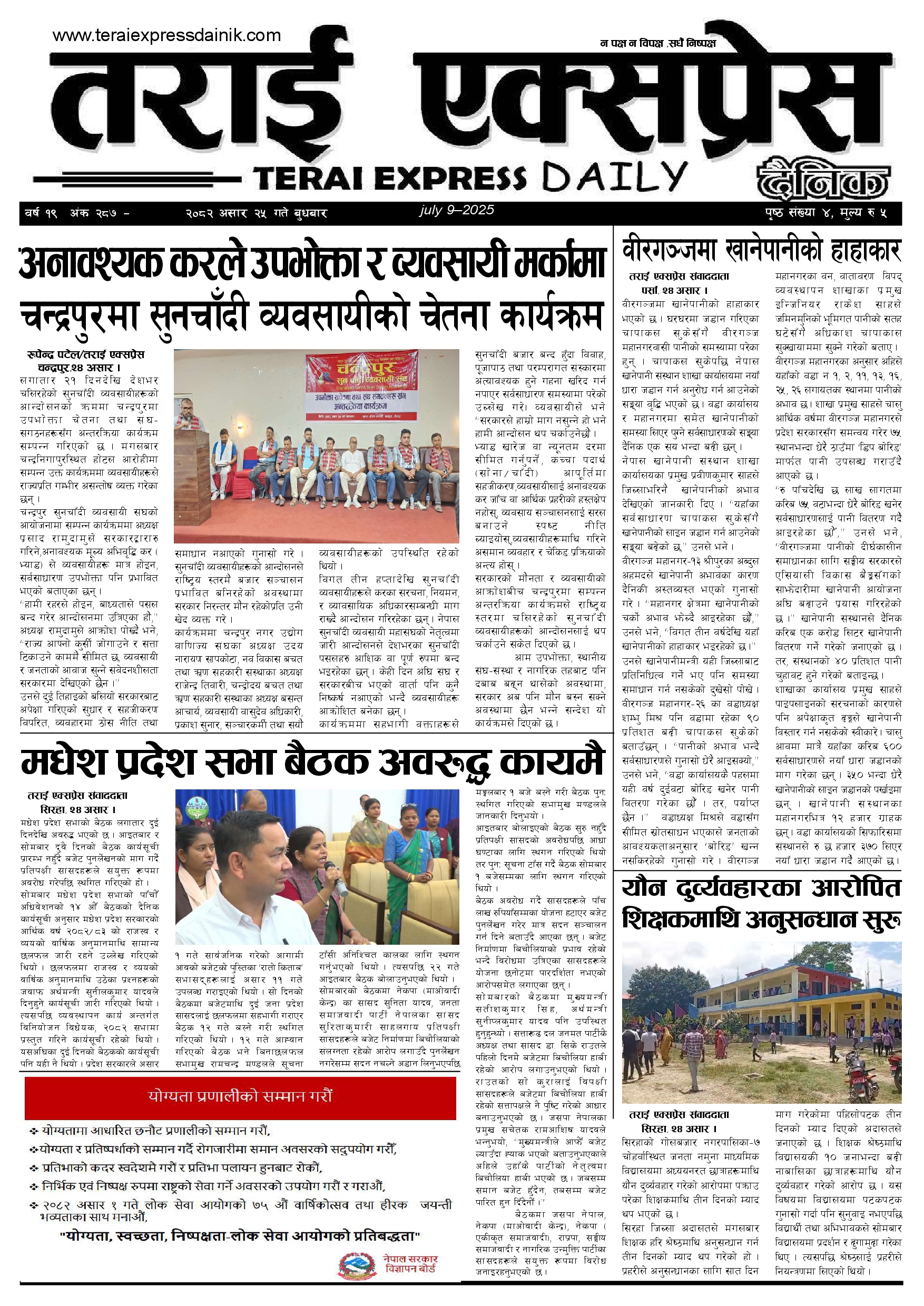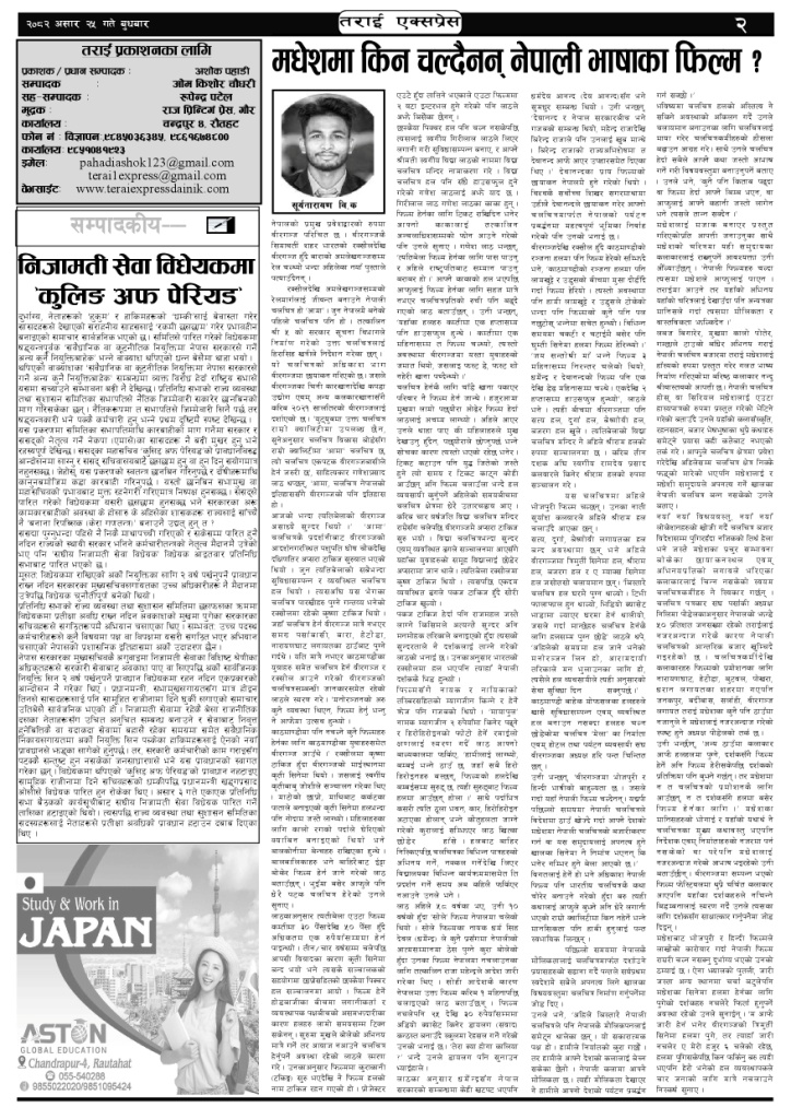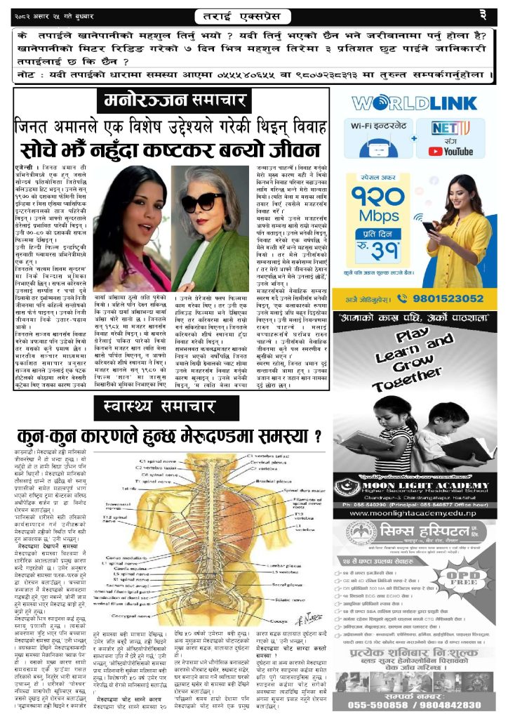 २०८२ असार २५ गतेको तराई एक्सप्रेस दैनिक