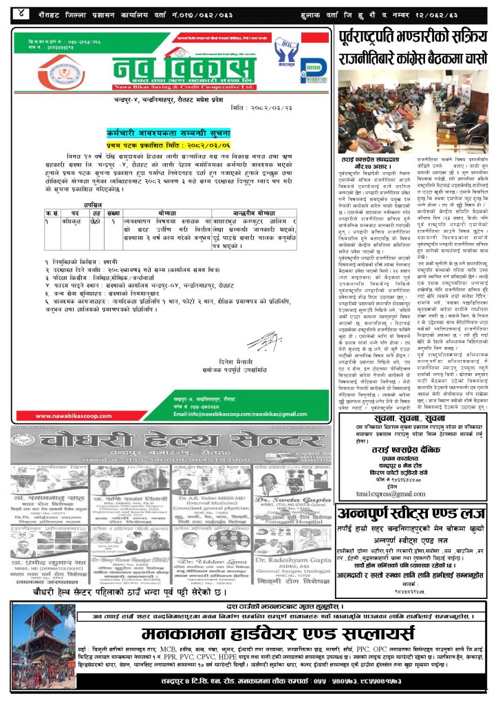 ईमेल: terai1express@gmail.com
