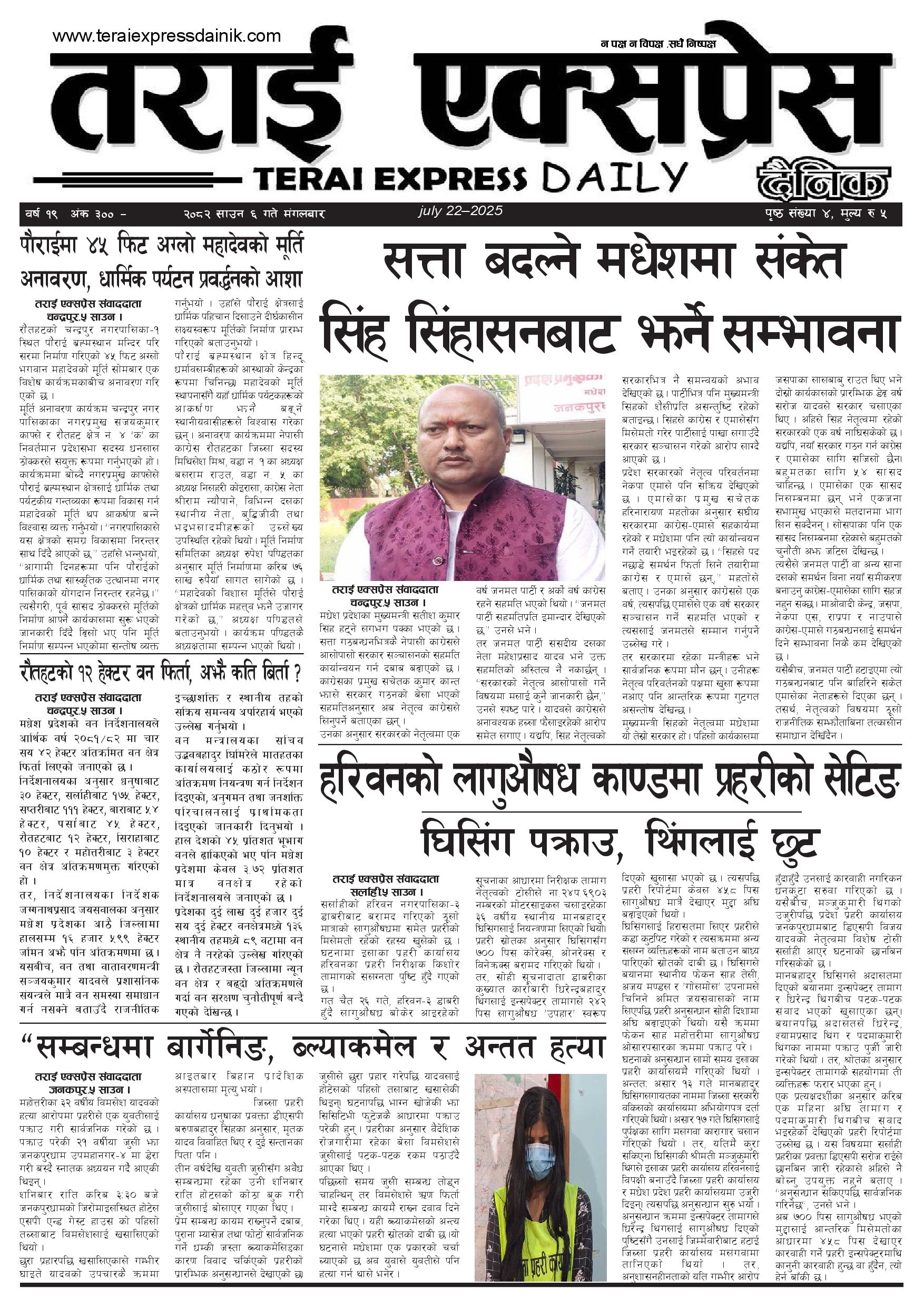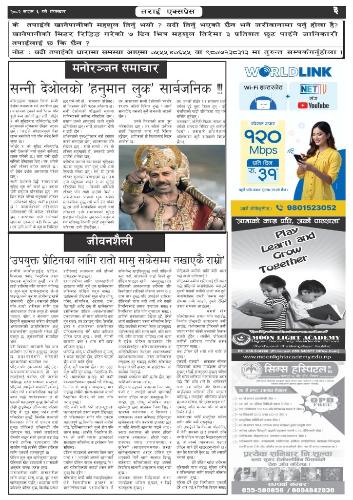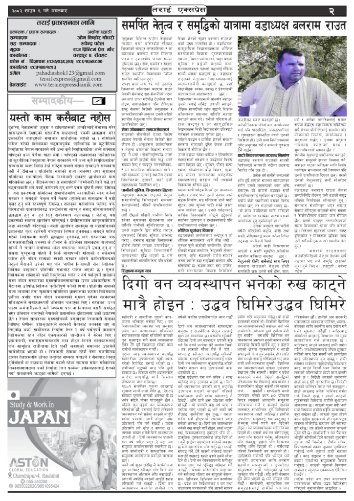 ई पेपर २०८२ साउन ६ गतेको तराई एक्सप्रेस दैनिक तराई एक्सप्रेस दैनिक - July 22, 2025 RELATED ARTICLESMORE FROM AUTHOR २०७३ वैशाख ९ गतेको तराई एक्सप्रेस दैनिक २०८२ वैशाख ८ गतेको तराई एक्सप्रेस दैनिक २०७३ वैशाख ३ गतेको तराई एक्सप्रेस दैनिक ताजा अपडेट २०७३ वैशाख ९ गतेको तराई एक्सप्रेस दैनिक April 22, 2026 राजमार्ग कब्जा गर्नेको दिन गयो: सरकार ‘एक्सन मोड’मा April 21, 2026 काजको आडमा असुली धन्धा : प्रहरीभित्रै ‘नेटवर्क’ चल्दै April 21, 2026 ओभरसियरले उल्टै थर्काए स्थानीय April 21, 2026 आजको राशिफल April 21, 2026 धेरैले पढेको २०७३ वैशाख ९ गतेको तराई एक्सप्रेस दैनिक April 22, 2026 राजमार्ग कब्जा गर्नेको दिन गयो: सरकार ‘एक्सन मोड’मा April 21, 2026 काजको आडमा असुली धन्धा : प्रहरीभित्रै ‘नेटवर्क’ चल्दै April 21, 2026 ओभरसियरले उल्टै थर्काए स्थानीय April 21, 2026 आजको राशिफल April 21, 2026