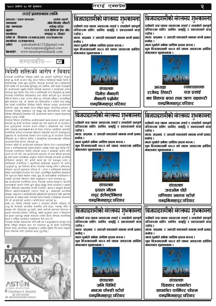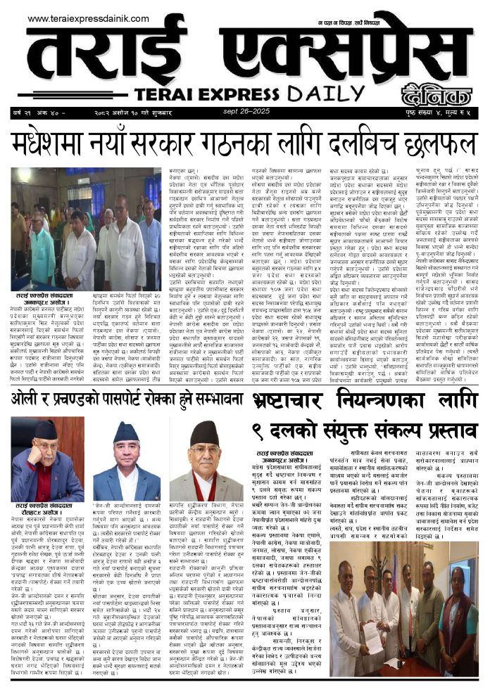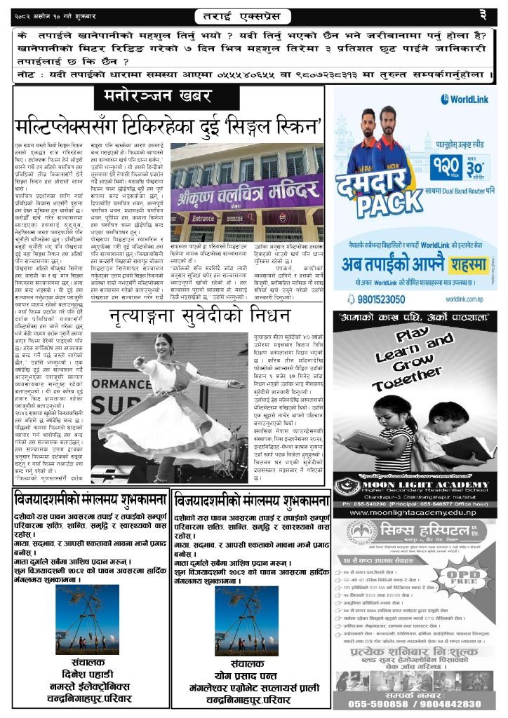 २०८२ असोज १० गतेको तराई एक्सप्रेस दैनिक