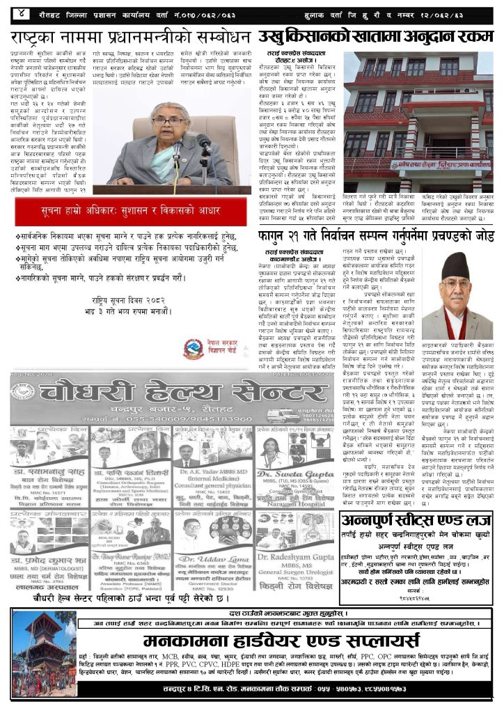 २०७३ वैशाख ९ गतेको तराई एक्सप्रेस दैनिक