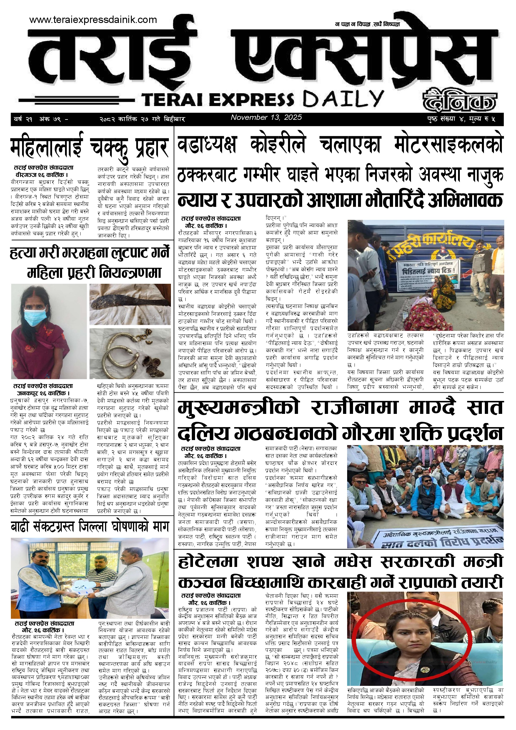यसअघि मंगलबार साँझ कटहरिया नगरपालिका–५ निवासी जयमङ्गल पासवानकी १७ वर्षीया छोरी छोटी पासवानले पनि घरभित्र सलको पासो लगाएर आत्महत्या गरेकी थिइन्। घटना हुँदा घरमा अन्य कोही नभएको बताइएको छ।