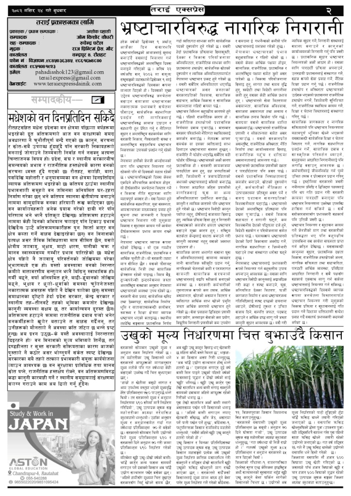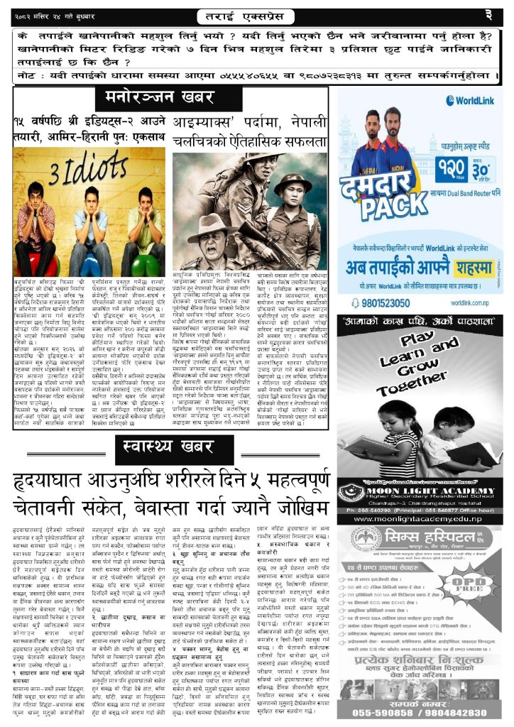 ई पेपर २०८२ मंसिर २४ गतेको तराई एक्सप्रेस दैनिक तराई एक्सप्रेस दैनिक - December 10, 2025 RELATED ARTICLESMORE FROM AUTHOR २०७३ वैशाख ९ गतेको तराई एक्सप्रेस दैनिक २०८२ वैशाख ८ गतेको तराई एक्सप्रेस दैनिक २०७३ वैशाख ३ गतेको तराई एक्सप्रेस दैनिक ताजा अपडेट जिल्ला धाउने दिन सकिने दाबी, व्यवहारमा कति सम्भव ? April 22, 2026 २६ दिनमै ढल्यो गृहमन्त्रीको कुर्सी, सुधन गुरुङ ‘लगानी काण्ड’मा आउट! April 22, 2026 २०७३ वैशाख ९ गतेको तराई एक्सप्रेस दैनिक April 22, 2026 राजमार्ग कब्जा गर्नेको दिन गयो: सरकार ‘एक्सन मोड’मा April 21, 2026 काजको आडमा असुली धन्धा : प्रहरीभित्रै ‘नेटवर्क’ चल्दै April 21, 2026 धेरैले पढेको जिल्ला धाउने दिन सकिने दाबी, व्यवहारमा कति सम्भव ? April 22, 2026 २६ दिनमै ढल्यो गृहमन्त्रीको कुर्सी, सुधन गुरुङ ‘लगानी काण्ड’मा आउट! April 22, 2026 २०७३ वैशाख ९ गतेको तराई एक्सप्रेस दैनिक April 22, 2026 राजमार्ग कब्जा गर्नेको दिन गयो: सरकार ‘एक्सन मोड’मा April 21, 2026 काजको आडमा असुली धन्धा : प्रहरीभित्रै ‘नेटवर्क’ चल्दै April 21, 2026