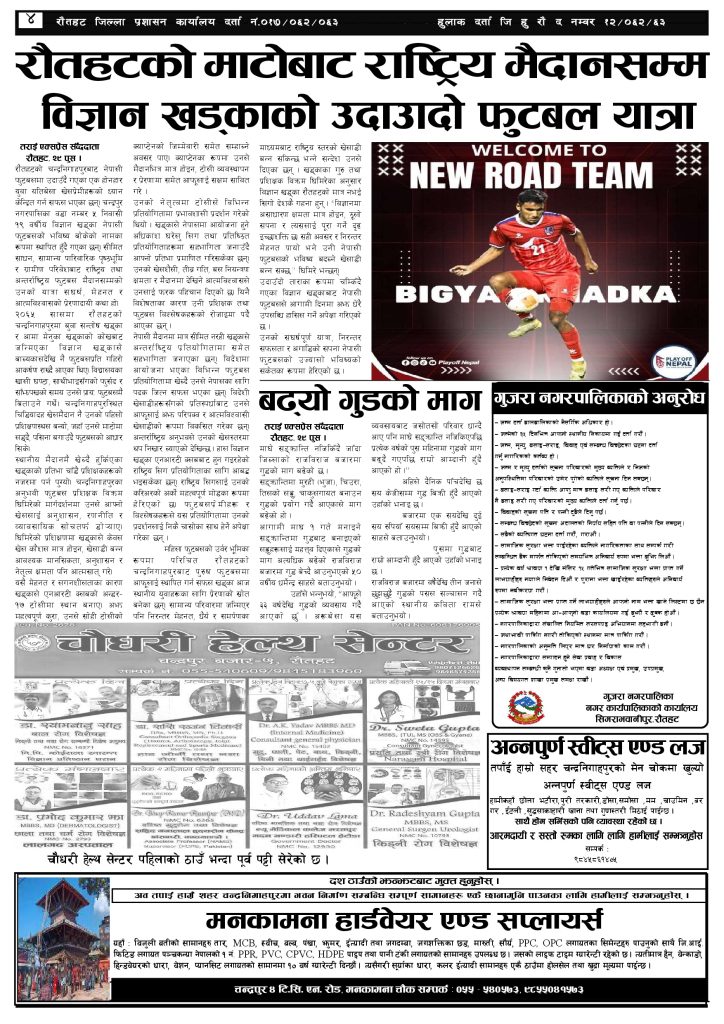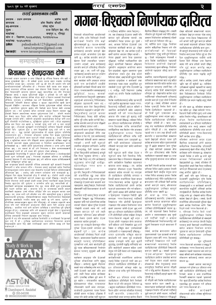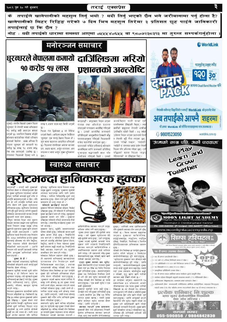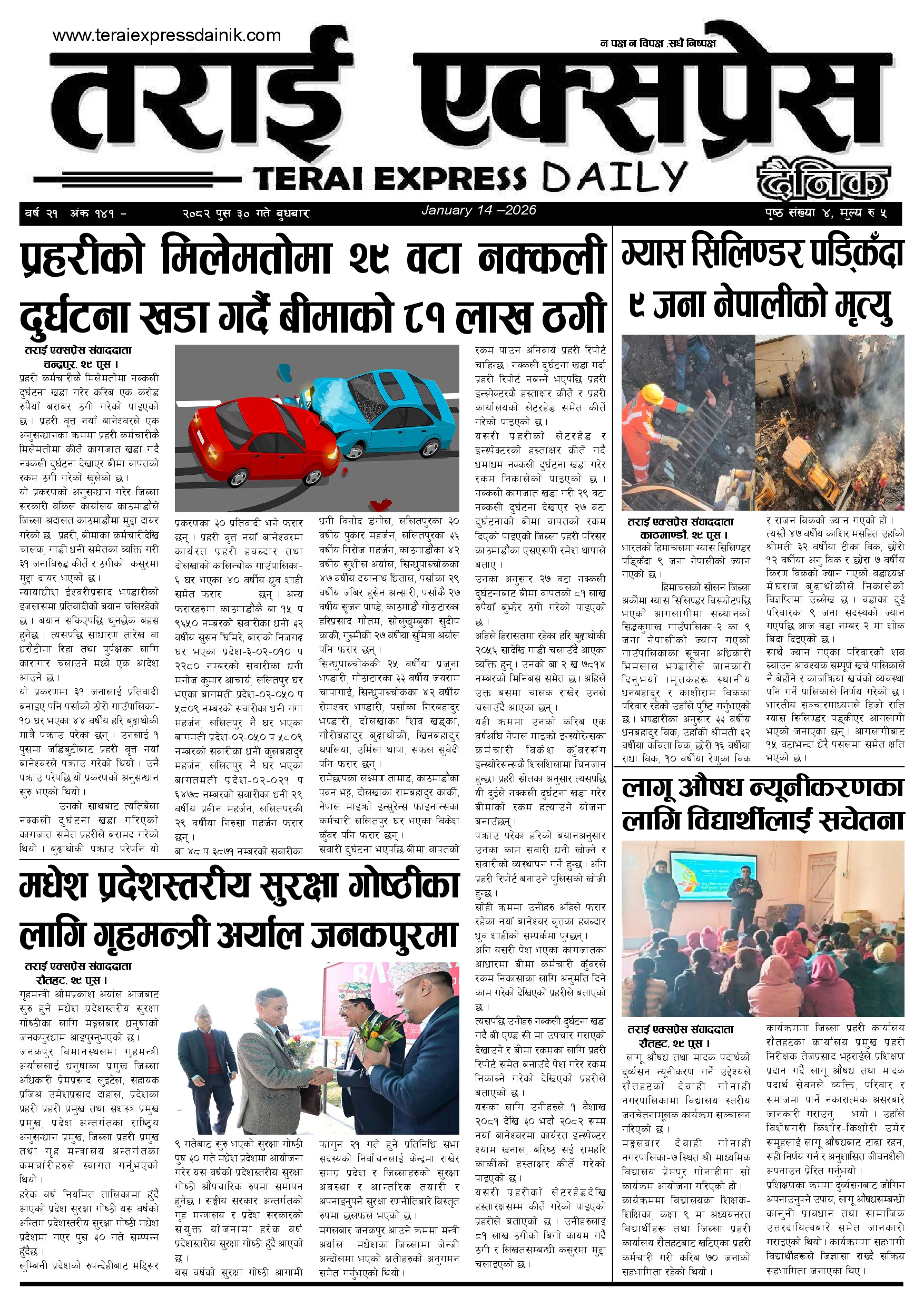 ई पेपर २०८२ पुस ३० गतेको तराई एक्सप्रेस दैनिक तराई एक्सप्रेस दैनिक - January 14, 2026 RELATED ARTICLESMORE FROM AUTHOR २०८२ माघ २ गतेको तराई एक्सप्रेस दैनिक २०८२ माघ १ गतेको तराई एक्सप्रेस दैनिक २०८२ पुस २९ गतेको तराई एक्सप्रेस दैनिक ताजा अपडेट प्रतिनिधिसभा निर्वाचन तयारी तीव्र : आजै सबै निर्वाचन क्षेत्रमा निर्वाचन अधिकृतको... January 16, 2026 २०८२ माघ २ गतेको तराई एक्सप्रेस दैनिक January 16, 2026 टिपरको ठक्करबाट एकको मृत्यु, एक महिला गम्भीर घाइते January 15, 2026 पवित्र मन्दिरमै आर्थिक चलखेल ,भेपर लाइट बिग्रिँदा स्थानीय आक्रोशित January 15, 2026 २०८२ माघ १ गतेको तराई एक्सप्रेस दैनिक January 15, 2026 धेरैले पढेको प्रतिनिधिसभा निर्वाचन तयारी तीव्र : आजै सबै निर्वाचन क्षेत्रमा निर्वाचन अधिकृतको... January 16, 2026 २०८२ माघ २ गतेको तराई एक्सप्रेस दैनिक January 16, 2026 टिपरको ठक्करबाट एकको मृत्यु, एक महिला गम्भीर घाइते January 15, 2026 पवित्र मन्दिरमै आर्थिक चलखेल ,भेपर लाइट बिग्रिँदा स्थानीय आक्रोशित January 15, 2026 २०८२ माघ १ गतेको तराई एक्सप्रेस दैनिक January 15, 2026