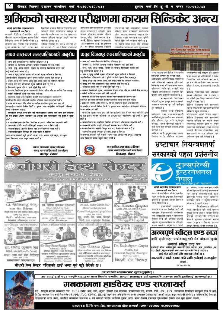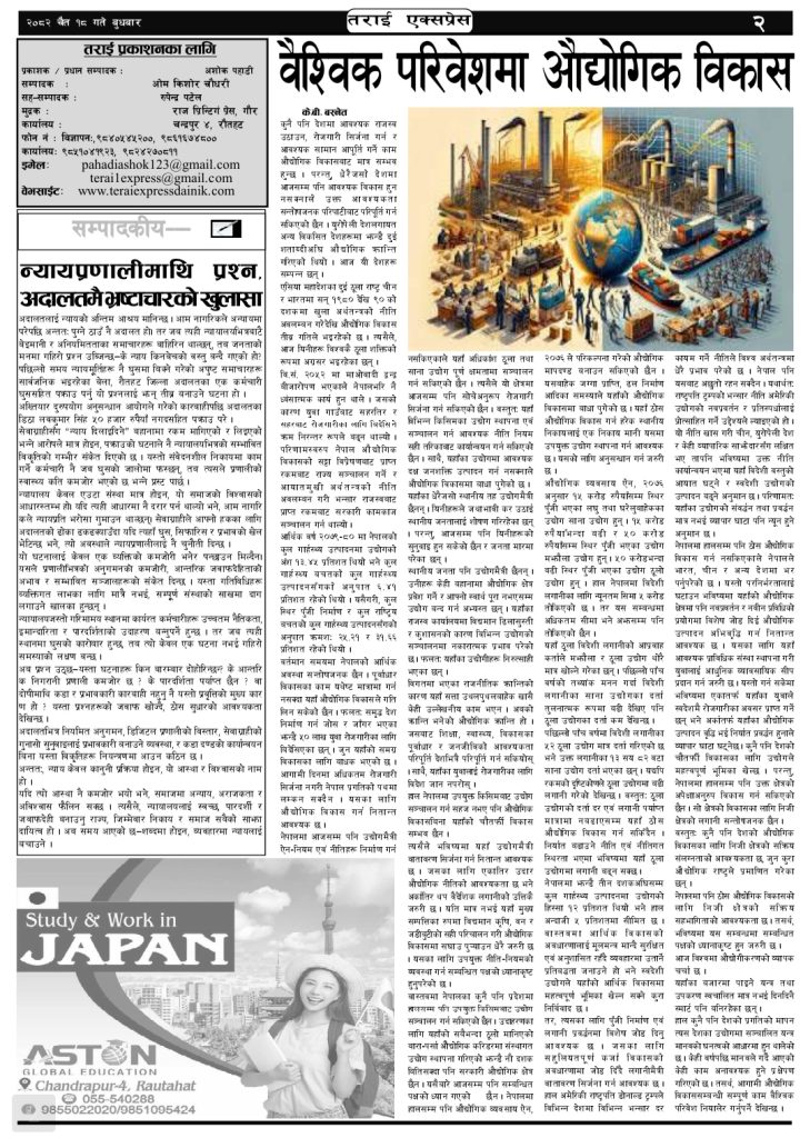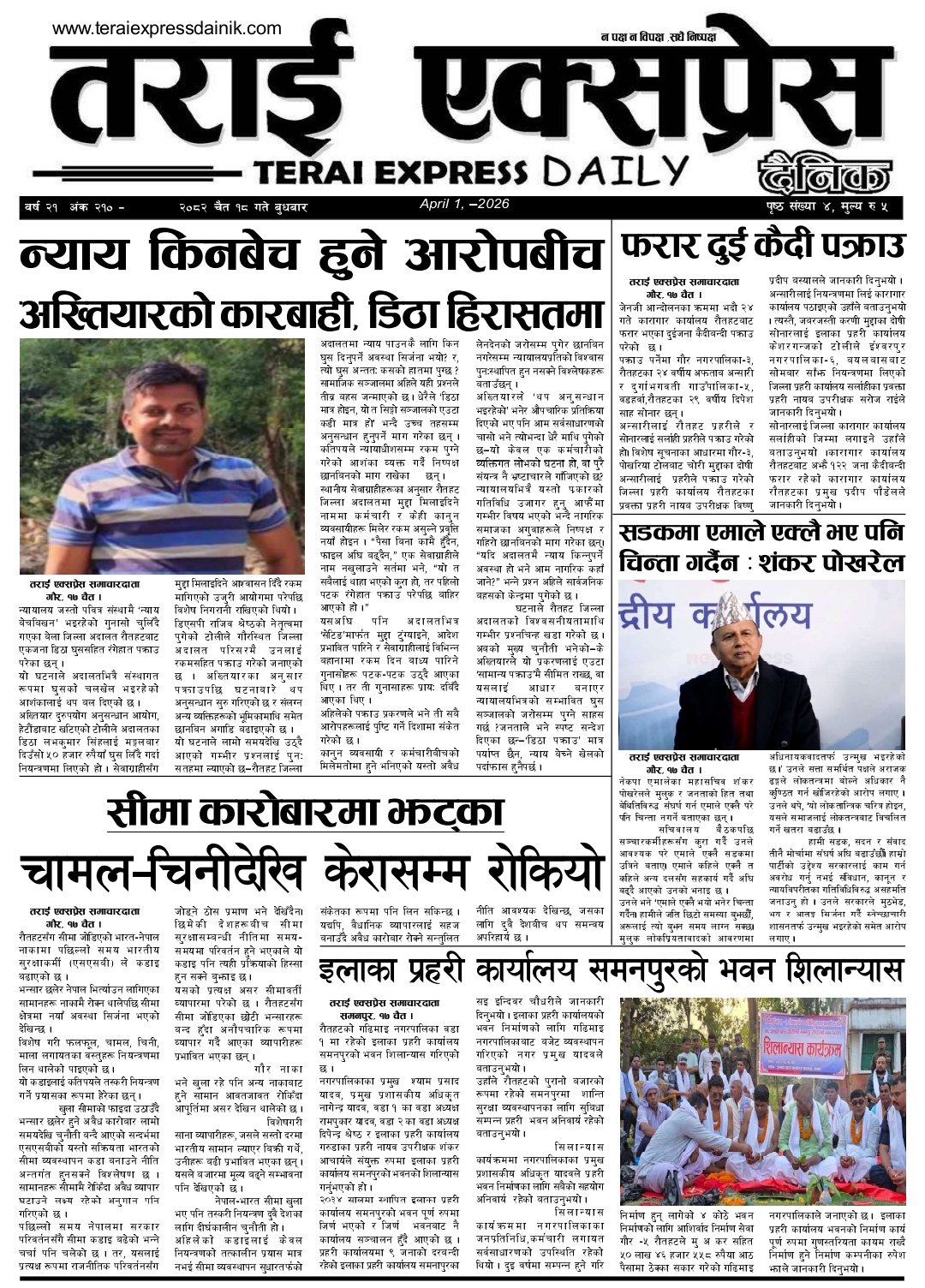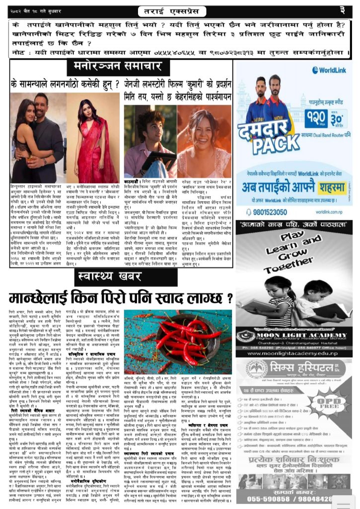 ई पेपर २०८२ चैत्र १८ गतेको तराई एक्सप्रेस दैनिक तराई एक्सप्रेस दैनिक - April 1, 2026 RELATED ARTICLESMORE FROM AUTHOR २०७३ वैशाख ९ गतेको तराई एक्सप्रेस दैनिक २०८२ वैशाख ८ गतेको तराई एक्सप्रेस दैनिक २०७३ वैशाख ३ गतेको तराई एक्सप्रेस दैनिक ताजा अपडेट यातायात व्यवस्था कार्यालय गौरमा सेवाग्राहीलाई ठगी गरेको आरोपमा एक जना पक्राउ April 22, 2026 जिल्ला धाउने दिन सकिने दाबी, व्यवहारमा कति सम्भव ? April 22, 2026 २६ दिनमै ढल्यो गृहमन्त्रीको कुर्सी, सुधन गुरुङ ‘लगानी काण्ड’मा आउट! April 22, 2026 २०७३ वैशाख ९ गतेको तराई एक्सप्रेस दैनिक April 22, 2026 राजमार्ग कब्जा गर्नेको दिन गयो: सरकार ‘एक्सन मोड’मा April 21, 2026 धेरैले पढेको यातायात व्यवस्था कार्यालय गौरमा सेवाग्राहीलाई ठगी गरेको आरोपमा एक जना पक्राउ April 22, 2026 जिल्ला धाउने दिन सकिने दाबी, व्यवहारमा कति सम्भव ? April 22, 2026 २६ दिनमै ढल्यो गृहमन्त्रीको कुर्सी, सुधन गुरुङ ‘लगानी काण्ड’मा आउट! April 22, 2026 २०७३ वैशाख ९ गतेको तराई एक्सप्रेस दैनिक April 22, 2026 राजमार्ग कब्जा गर्नेको दिन गयो: सरकार ‘एक्सन मोड’मा April 21, 2026