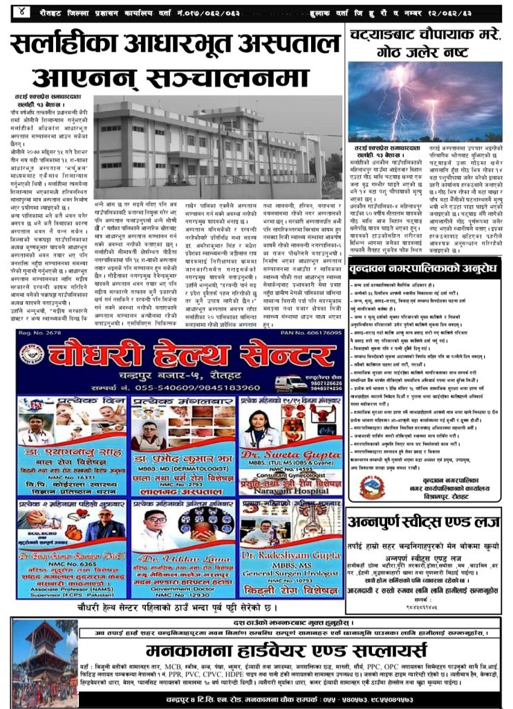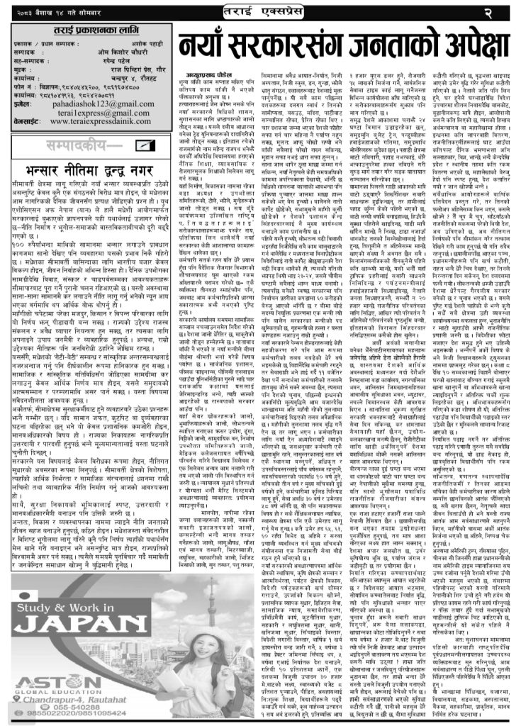 २०७३ वैशाख ९ गतेको तराई एक्सप्रेस दैनिक