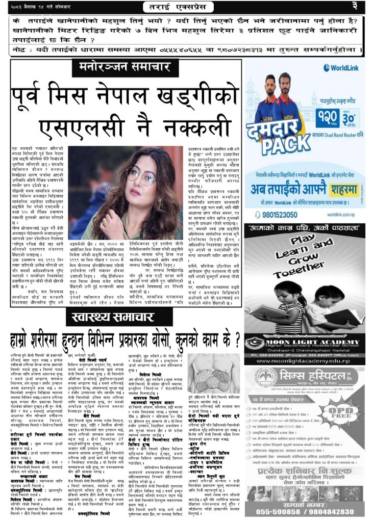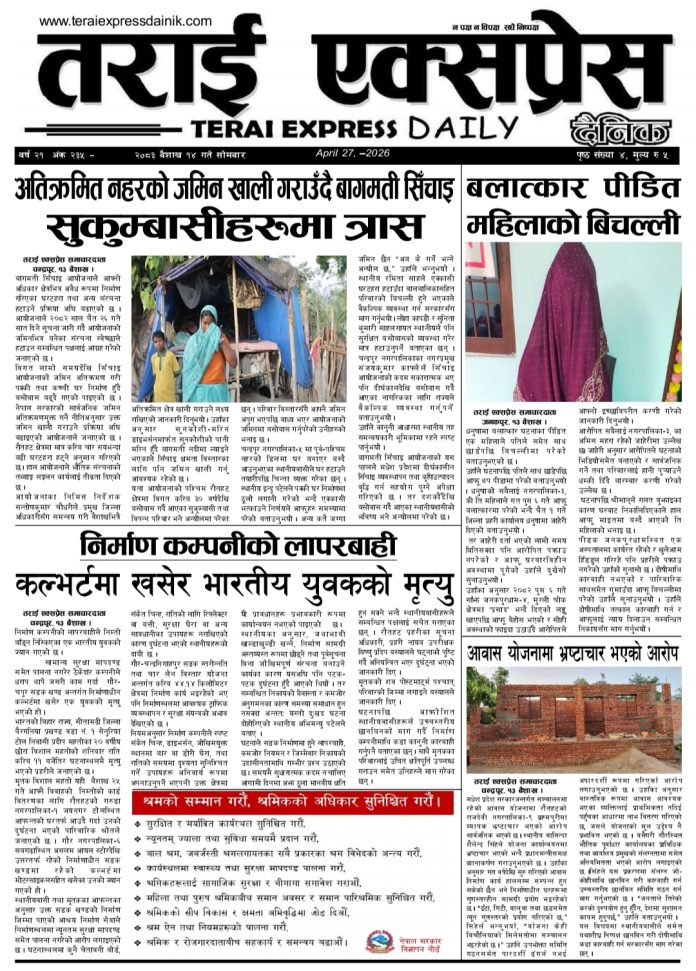 २०८३ वैशाख १४ गतेको तराई एक्सप्रेस दैनिक